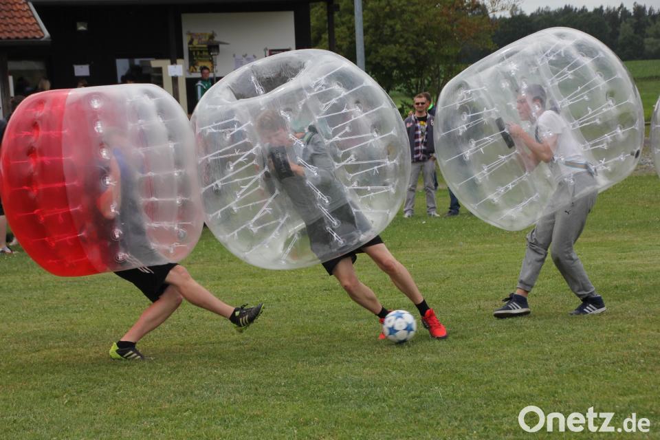 Großkonreuth. (kro) Auch bei der dritten Auflage des legendären Bubbleball-Turniers der SG Großkonreuth am Samstag war Spaß und Gaudi Trumpf. Zahlreiche Zuschauer feuerten auf dem SG-Sportgelände die Teams an. Das Team "Mir Wurschd!" verteidigte den Titel. In einem spannenden Finale setzte es sich gegen den "FC Saufhampton" durch.