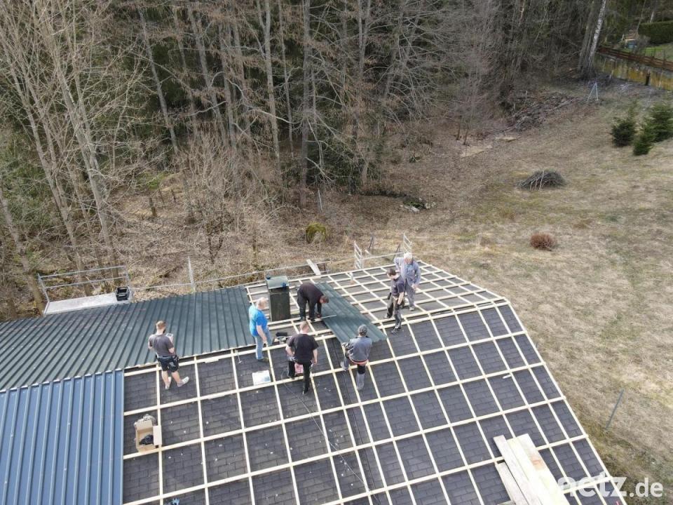 In den vergangenen Wochen hat das Schützenhaus in Grünlas eine neue Dacheindeckung erhalten. Die circa 35 Jahre alten Dachpappschindeln, die sehr mit Moos bewachsen waren und daher stellenweise undicht waren, wurden durch ein Trapezblechdach ersetzt. Zunächst bauten die fleißigen Helfer ein Gerüst auf und montierten die Lattung. Anschließend schraubten sie die Trapezblechtafeln unter fachmännischer Anleitung durch Thomas Plannerer auf. Die Mitglieder leisteten für die Baumaßnahme circa 150 ehrenamtliche Arbeitsstunden. Jetzt können sich die Schützen im Verein wieder ihrem Schießsport widmen, vorausgesetzt die Pandemie lässt das bald wieder zu.