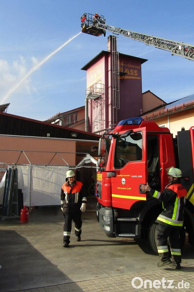 Die Feuerwehr Gunzendorf benötigte nicht viel Zeit bis sie vom Hydranten am Feuerwehrhaus die Wasserversorgung zur Brandbekämpfung gelegt hatte. Für den ersten Löschtrupp hieß es bereits um 14.54 Uhr "Wasser marsch". Auch das Löschfahrzeug war ausgerückt und stand mit dem gesamten Gerät bereit. Die Alarmmeldung war: Heizungsbrand im Untergeschoss der Schreinerei, Gefährdung des Turms mit Hackschnitzeln durch übergreifendes Feuer, zwei vermisste Personen.