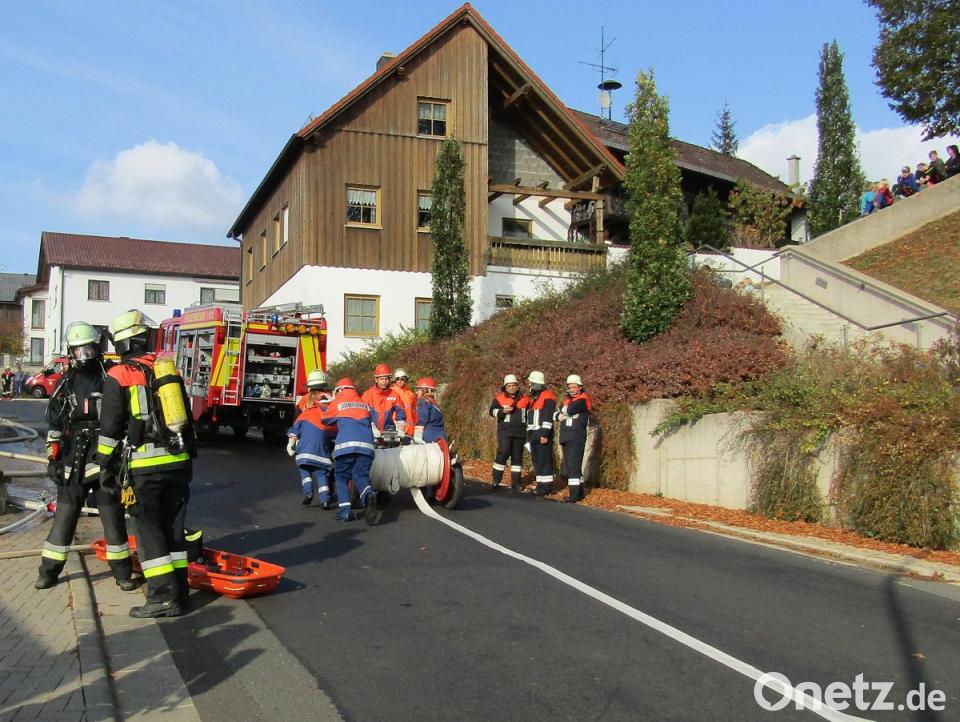 Das Wasser aus den Hydranten war jedoch nicht ausreichend. Daher musste sogar eine Leitung zum Goldbrunnbach gelegt werden. Dies übernahmen die Wehren aus Nasnitz, Nitzlbuch und Michelfeld. Diese Leitung mit einer Länge von 700 Metern hatte 50 Höhenmeter zu überwinden. Dazu setzte jede der drei Wehren ihre Pumpe ein.