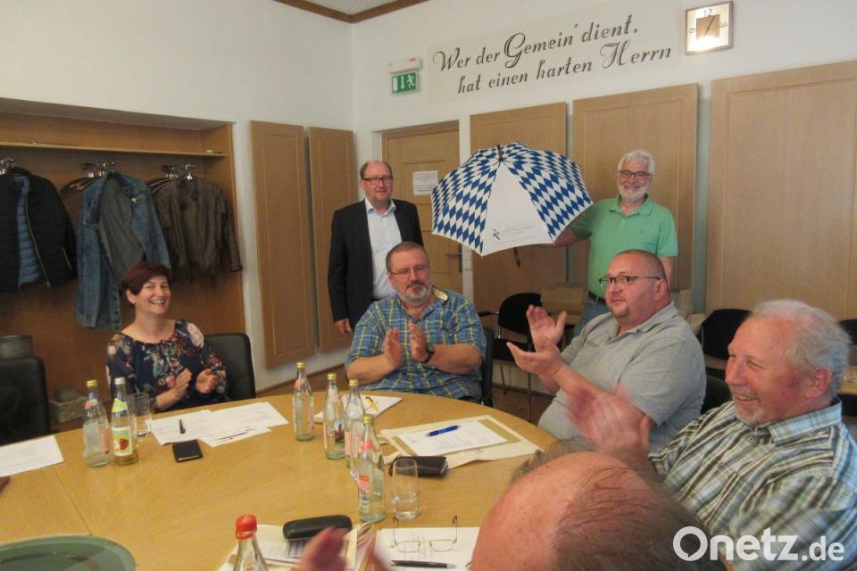 Die Kulturfreunde Lobkowitz sorgen dafür, dass die Bürger der Stadt im Jubiläumsjahr nicht im Regen stehen. "Seit Jahren werden wir von der Stadt unterstützt. Dafür wollen wir uns jetzt bedanken", sagte Bernhard Knauer. Zusammen mit Reinhold Zapf überreichte er am Ende der Sitzung jedem Stadtrat einen Jubiläumsschirm.