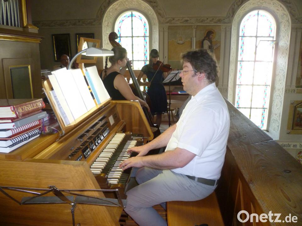 Die Organisatoren hatten ein gutes Händchen bei der Auswahl. Die Fantasia F-Dur für Orgel von Johann Ludwig Krebs lässt Karl Stepper schwungvoll erklingen. Von Georg Friedrich Händel folgte die Arie „Meine Seele hört im Sehen“ mit der Solostimme von Alexander Kolleth. Judith Scholz und Karl Stepper rundeten diesen Part mit Violine und Orgel ab. Es folgte die Bass-Arie „Wenn ich mit Menschen- und mit Engelszungen redete“ von Louis Pressel, die Quirin Scholz tonschön gestaltete. Wie immer begleitete Karl Stepper auf der Orgel. Rein instrumental waren die beiden ersten Sätze der Sonate C-Dur von Händel, die Judith Scholz auf der Violine spielte, wobei Amelie-Marie Bräutigam virtuos auf dem Kontrabass zusammen mit Karl Stepper an der Orgel den Generalsbass gestalteten. Ein frisch eingefügter Programmpunkt folgte: Tenor Oliver Trahndorff sang Präludium und Arie „Comfort me / Every Valley“ aus dem Oratorium „Der Messias“ von Händel. Eine weitere Orgelfantasie von J. L. Krebs schloss sich an - diesmal „à gusto italiano“, also in leicht tänzerischer Manier. Dann sang das gesamte Quartett - Alexander Kolleth (Sopran), Sigrid Scholz (Alt), Oliver Trahndorff (Tenor) und Quirin Scholz (Bass) das „Kyrie“ aus der „Messa a 4 voci“ von Claudio Monteverdi in fein abgestimmter Tonführung und unter einfühlsamer Leitung von Karl Stepper. Von Domenico Zipoli folgten zwei kurze Orgelstücke: „Al Post comunio“ wurde flink vorgetragen, „All´ Offertorio“ erklang als festliche Hymne. Die drei weiteren Sätze aus der Sonate HWV 365 von Händel schlossen sich an. Wieder zeigte das instrumentale Trio gediegenes Zusammenspiel.