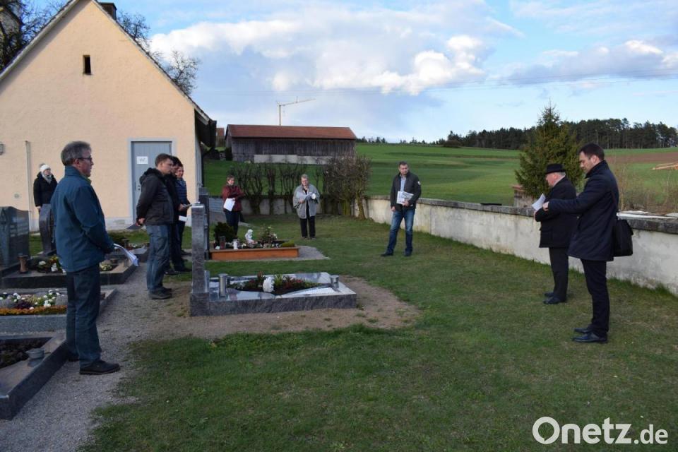 Die Gestaltung eines Urnenfeldes stand bereits des Öfteren auf der Tagesordnung. Nun soll das Ansinnen auch umgesetzt werden. Dazu traf sich der Gemeinderat am Friedhof in Weidenthal. Die technische Beratung hatte Johannes Schießl vom Bauamt der VG Nabburg übernommen. Die Planung sieht ein mit Rasen begrüntes Urnenfeld an der südöstlichen Friedhofsmauer zwischen Leichenhaus und Treppenaufgang vor. Entlang der Mauer werden zehn Urnenerdröhren für bis zu drei Urnen bodenbündig eingebaut. Die Abdeckung der Erdröhren erfolgt durch eine Betonplatte, die später durch eine gravierte Natursteinplatte ersetzt werden kann. Die Abgrenzung des Urnenfeldes zur Mauer gewährleistet ein 80 Zentimeter breiter Kiesstreifen, den ein Graniteinzeiler markiert. Im Anschluss folgt das ein Meter breite, eigentliche Urnenfeld, dessen Blickfang die gravierten Natursteinplatten darstellen. Der seitliche Abstand zwischen den Urnenerdröhren beträgt 90 Zentimeter.