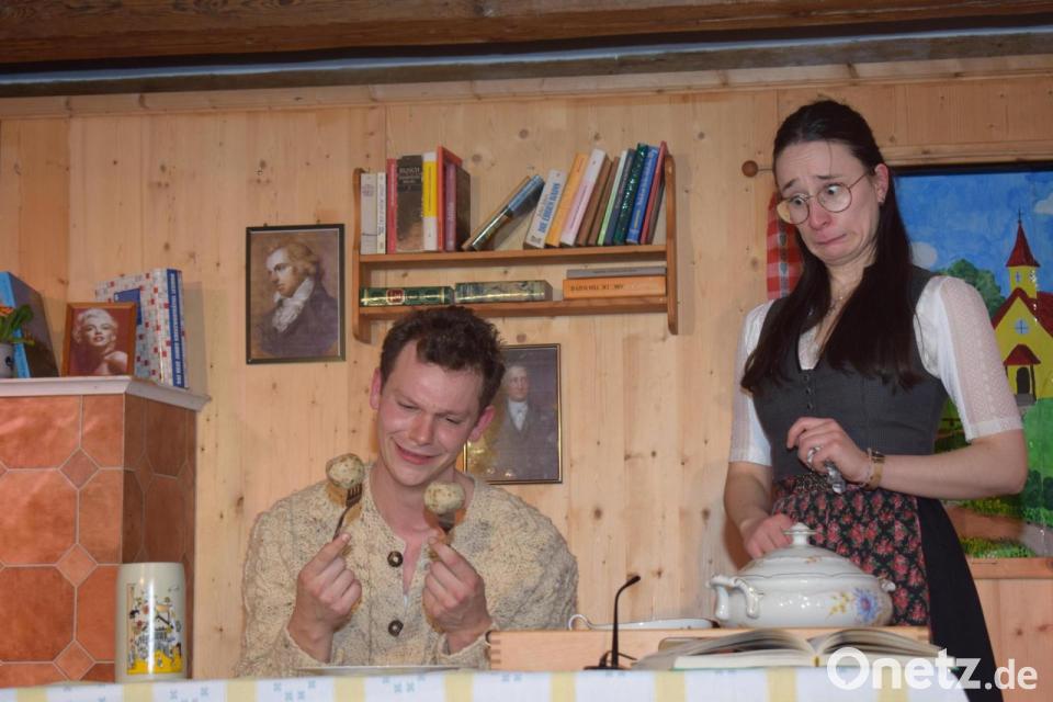 Bei der Premiere am Samstag im Mehrzweckraum der Schule in Weidenthal, war das Publikum hellauf begeistert und spendete tosenden Applaus. Zum Inhalt des Stücks: Ignaz Igel (Lukas Irlbacher) dreht fast durch. Er kann bald keine Brezenknödel mehr sehen. Denn der mittellose Heimatromanschreiberling muss ein und denselben Tag immer wieder neu erleben. Er hängt offenbar in einer Zeitschleife fest. Täglich erscheinen seine Schwägerin Emerenz (Anna Forster), der Bürgermeister, zugleich Braumeister Hopfmoser (Johannes Eckl), und der Nichtsnutz Fips (Bastian Kraus), um ihn zum Verkauf seiner Himmelsschlüsselwiese für ein neues Gemeindehaus zu überreden. Und seine bissige Tochter Hanni (Franziska Wilhelm) will den arroganten Rosser Flori (Johannes Irlbacher) heiraten, den der Ignaz überhaupt nicht mag.