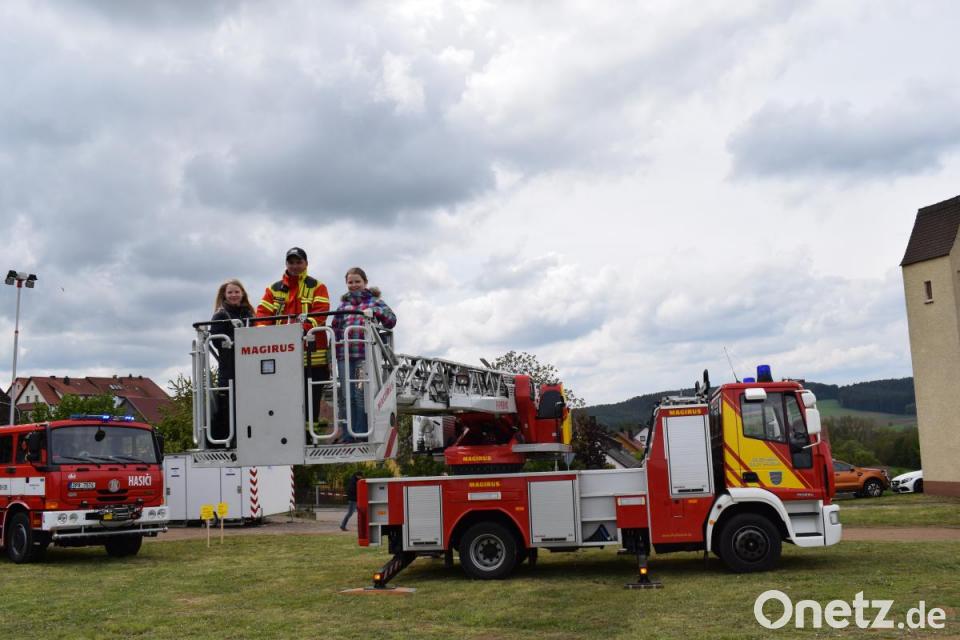Spektakulär, aber notwendig, war der Einsatz der Rettungsschere. Mit deren Hilfe konnten die verletzen Auto-Insassen aus ihrer misslichen Lage befreit werden. Neben der Rettungsübung fanden die Einsatzfahrzeuge der übrigen Hilfsorganisationen das Interesse der Zuschauer. Die neueste Fahrzeugtechnik war im HLF 20 mit Nebellöschsystem der Feuerwehr Teunz, im MLF mit einem 600-Liter-Tank der Feuerwehr Pertolzhofen und im Mannschaftstransportwagen der Feuerwehr Trausnitz zu sehen. Dicht an dicht drängten sich die Besucher an der Drehleiter der Feuerwehr Pfreimd. Viele wollte auch einmal das Gefühl schwindelnder Höhe erleben.