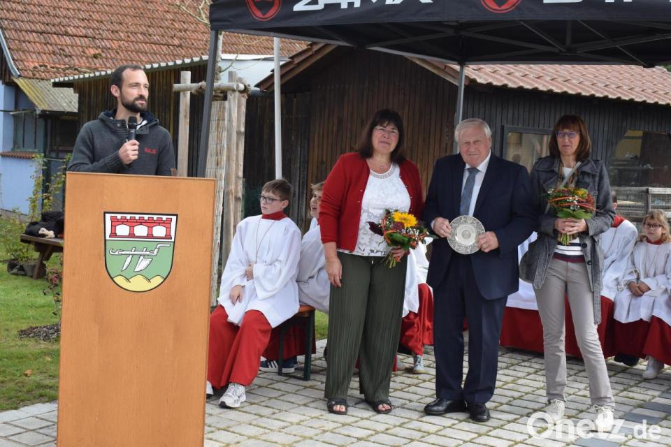 Als Mitglied der Vorstandschaft der Flurbereinigung bezeichnete Irmi Spichtinger die neue Dorfmitte als Symbol des Zusammenhalts und der Gemeinschaft: „Es ist ein Versprechen an die Zukunft: Wir halten zusammen.“ In die selbe Kerbe schlug auch der Dorfsprecher von Weidenthal, Johannes Lippert, dem es vorbehalten war, drei Personen zu danken und auszuzeichnen, die sich in besonderer Weise für das Gelingen der Dorferneuerung eingesetzt hatten. Es waren dies Bürgermeister Johann Wilhelm, Roswitha Heininger von der VG Nabburg und Irmi Spichtinger als Mitglied der Vorstandschaft. Nach dem weltlichen Teil erteilte Pfarrer Savari dem Dorfmittelpunkt den kirchlichen Segen und wünschte der Ortschaft Weidenthal, dass die Dorfmitte ein Ort der Begegnung und der Gemeinschaft wird.