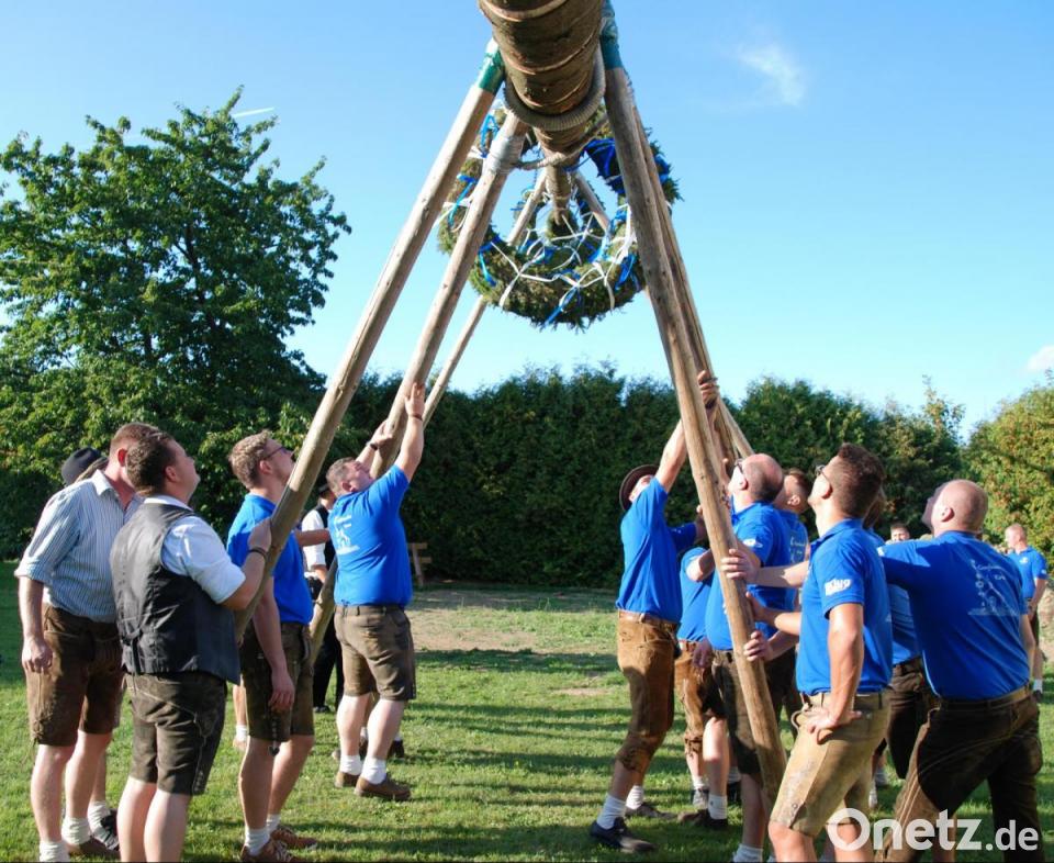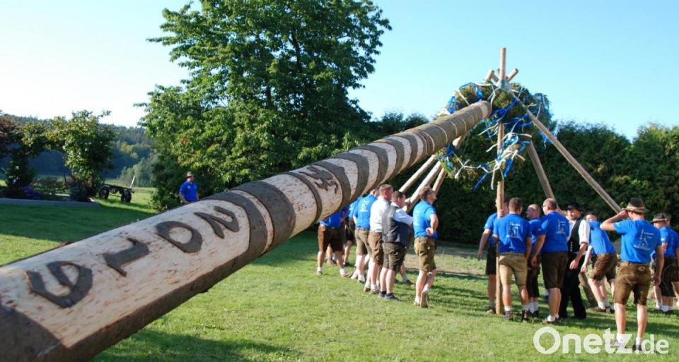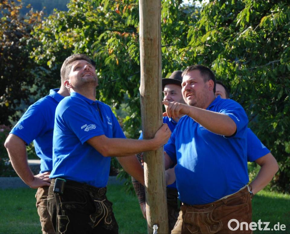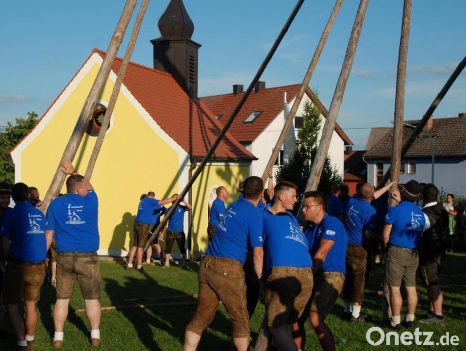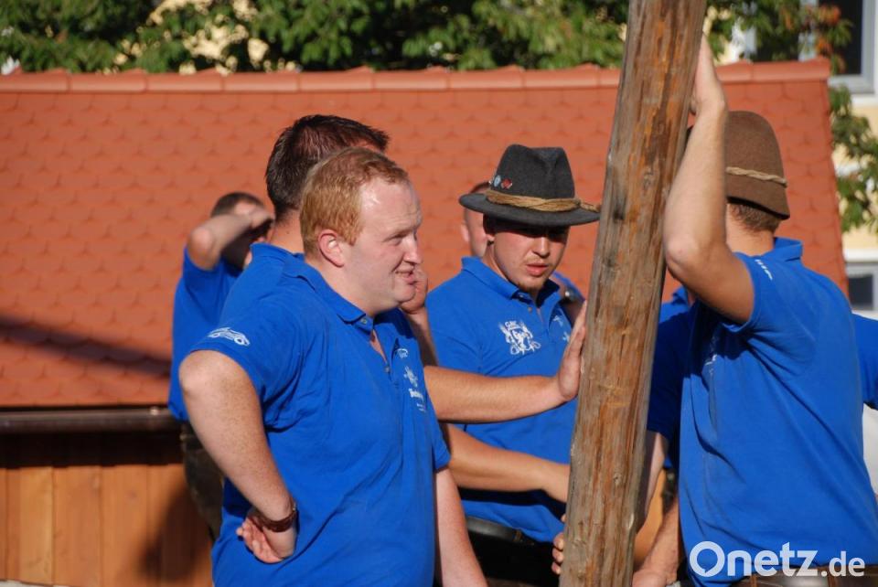 Mit den Worten "Pack mas dann o" ging es zum Aufstellen des knapp 30 Meter langen Baumes zur Wiese oberhalb der Kapelle. Die zahlreichen Zuschauer freuten sich über Blasmusik und die vom Kapellenverein servierten Kuchen und Torten. Das kräftezehrende Aufstellen klappte auch bei der zwölften Kirwa hervorragend. Dabei war den jungen Leuten in Tracht die Freude über das Gemeinschaftswerk anzusehen. Außerdem beflügelte der Kameradschaftsgeist. Schließlich sind die Kirwaleid eine ganze Woche lang mit den Vor- und Nacharbeiten beschäftigt. Die beiden Vorsitzenden der Gonfeiaschta Kirwaleid, Markus Portner und Matthias Meier, dankten dem Kaplan für den festlichen Gottesdienst, musikalisch umrahmt von der vereinseigenen "Kirwablosn".