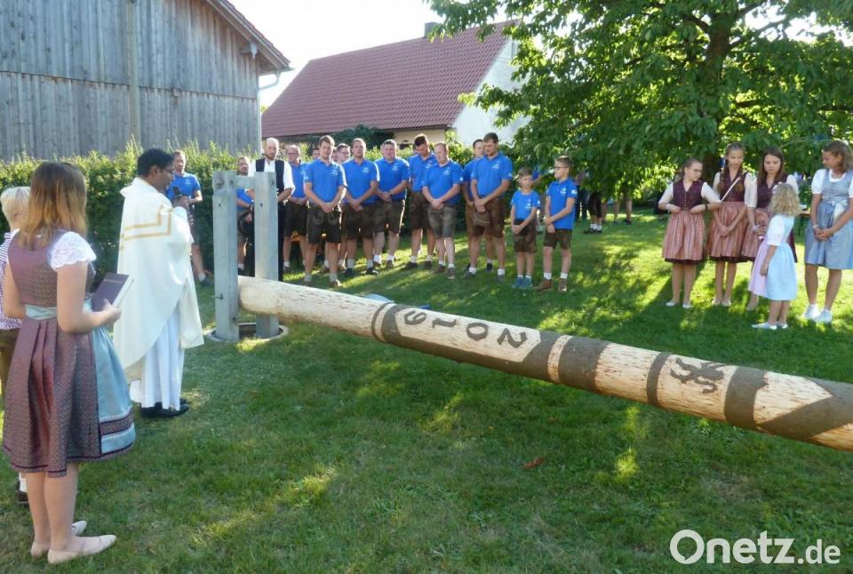 Die gelb-weißen Fahnen am Dorfplatz wehten im Wind als am Samstag die Glocken der Kapelle "Maria Namen" zum Patroziniumsgottesdienst einluden. Neben dem Kirwaverein fanden sich auch Anwohner und viele Gäste ein. Für Kaplan William Akkala war es die erste Kirwa in Gutenfürst. Er freute sich deshalb auch über das Lob von Matthias Meier: "Das Wetter hat noch keiner so gut hingekriegt." Der Geistliche erklärte in der Predigt, warum der Name Maria mit "Meeresstern" übersetzt wird: "Sie zeigt auf dem Meer den Sinn einer Reise, damit wir uns nicht verirren." Und: "Maria versagt niemandem die Hilfe, der sie darum bittet." Nach dem Schlusslied segnete der Kaplan den mit Kränzen und Schnitzereien geschmückten Fichtenstamm.