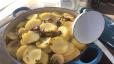 Öl in die Pfanne geben und die Hacksteaks von jeder Seite zirka zwei Minuten braten und in eine Auflaufform geben. Die Brühe in die Pfanne gießen und unter rühren den Satz aufkochen.