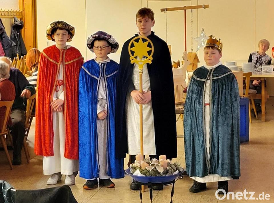 Hannelore Schuster als Verantwortliche der Behindertenbetreuung stimmte auf das Thema des Nachmittags „Sie folgten dem Stern …“ ein und trug meditativen Texte vor. Die drei Könige zeigten mit ihrem Gewand, dass jeder Mensch königliche Würde habe, egal ob Kind, Jugendlicher oder älterer Mensch, und dass diese auch geachtet werden müsse. Zwischen den Texten brachten Lara, Lea, Noah und Paul zusammen mit ihrer Lehrerin Julia Deggeller weihnachtliche Blockflötenklänge zu Gehör.