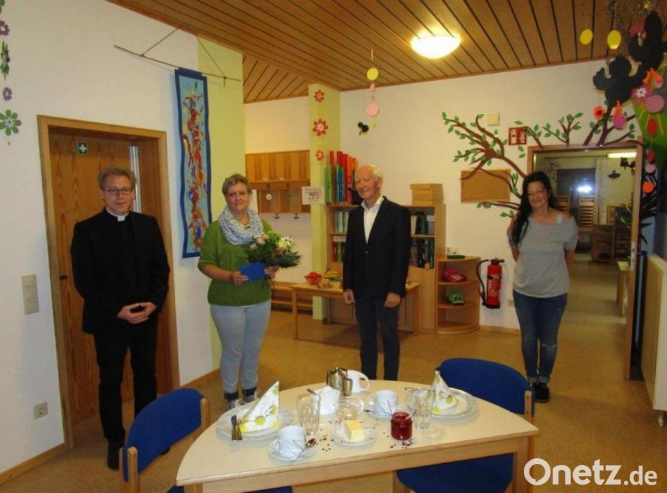 Dekan Christian Schulz und Kirchenpfleger Georg Münch gratulierten mit einem Blumenstrauß und dankten Maria Kontny für ihren großartigen Einsatz und hoben besonders ihre sensible und kindgerechte Religionspädagogik hervor, "die sicherlich manche Herzen für die Frohbotschaft des Glaubens öffnen konnte". Georg Münch ernannte Kontny bei dieser Gelegenheit zur stellvertretenden Kindergartenleiterin.