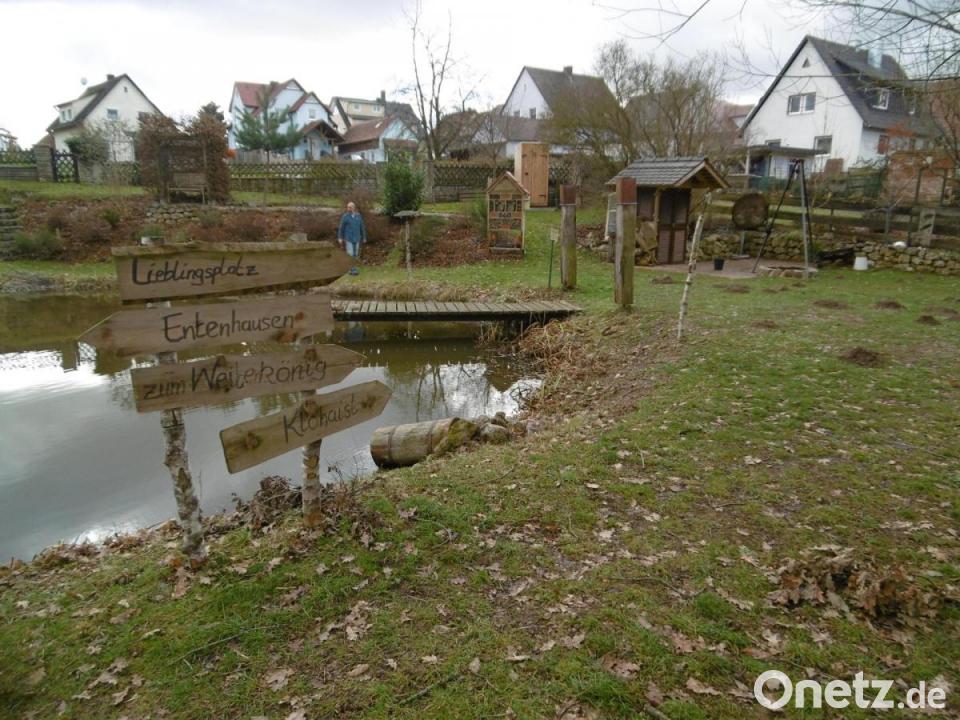Liebevoll Ossi-Weiher nennen die Einheimischen das von Jürgen Göpfert, einem gebürtigen Thüringer, und seiner Hahnbacher Frau, der Käufl Liesl, geschaffene Idyll, das seit Jahren die Blicke auf sich zieht. Ganz bewusst haben die beiden ein Türl weggelassen, so dass sich ein jeder daran erfreuen kann.