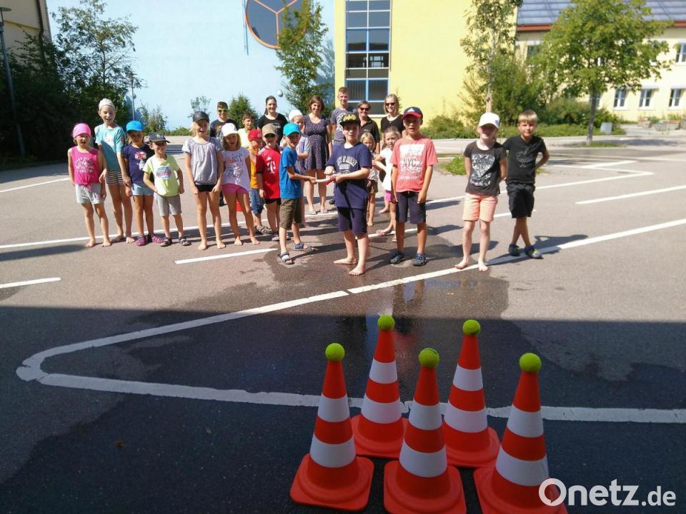 18 Vorschul- und Schulkinder hieß Karin Weber am Feuerwehrhaus willkommen. Eingeteilt in drei Gruppen, ging es im Hof der nahen Grundschule rund. Verena Gebert, Nina Birzer, Lea Spitzenberger, Joel Benz und Dominik Bönisch begleiteten die motivierten Kinder an den fünf Stationen. Mit Stoppuhr und Plan galt es, die nicht immer einfachen Aufgaben zu erfüllen. Da war mit Joghurtbechern Wasser von einem Zuber zum anderen zu transportieren oder Plastikenten mit einem kleinen Schubkarren zu „retten“. Ganz schon viel Kraft erforderte das Pumpen mit der Spritze, um Tennisbälle von Pylonen herunterzuholen. Ein ruhiges Händchen und Exaktheit waren nötig, um auf Zeit so viele gebogene Nägel wie möglich von einem Draht zum anderen umzuhängen. Das Stapeln von Muttern erforderte Konzentration. Bei gefühlten 35 Grad in der Sonne war immer das Durchlaufen eines Wasserschleiers ein wahres Vergnügen, zumal alle Kinder vorsichtshalber Wäsche zum Wechseln mitgebracht hatten. Die Brotzeit beim nahen Feuerwehrfest rundete den gelungenen Nachmittagab.