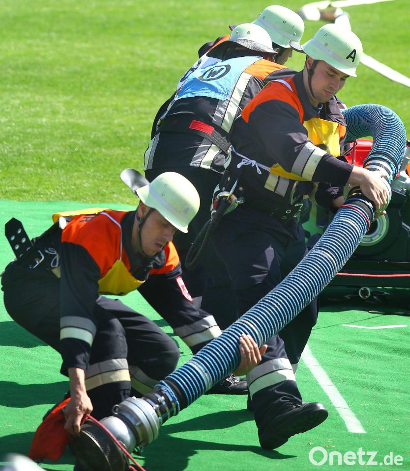 (ibj) Wo sich sonst Jugendliche auf der Skaterbahn oder Kinder zum Spielen treffen, wimmelt es am Samstag von Feuerwehrleuten. Die Einsatzkräfte, die in voller Montur über die Gockelwiese an der Vilsbrücke rennen, tun dies nicht, um einen Brand zu löschen: Sie messen sich im Oberpfalz-Cup.