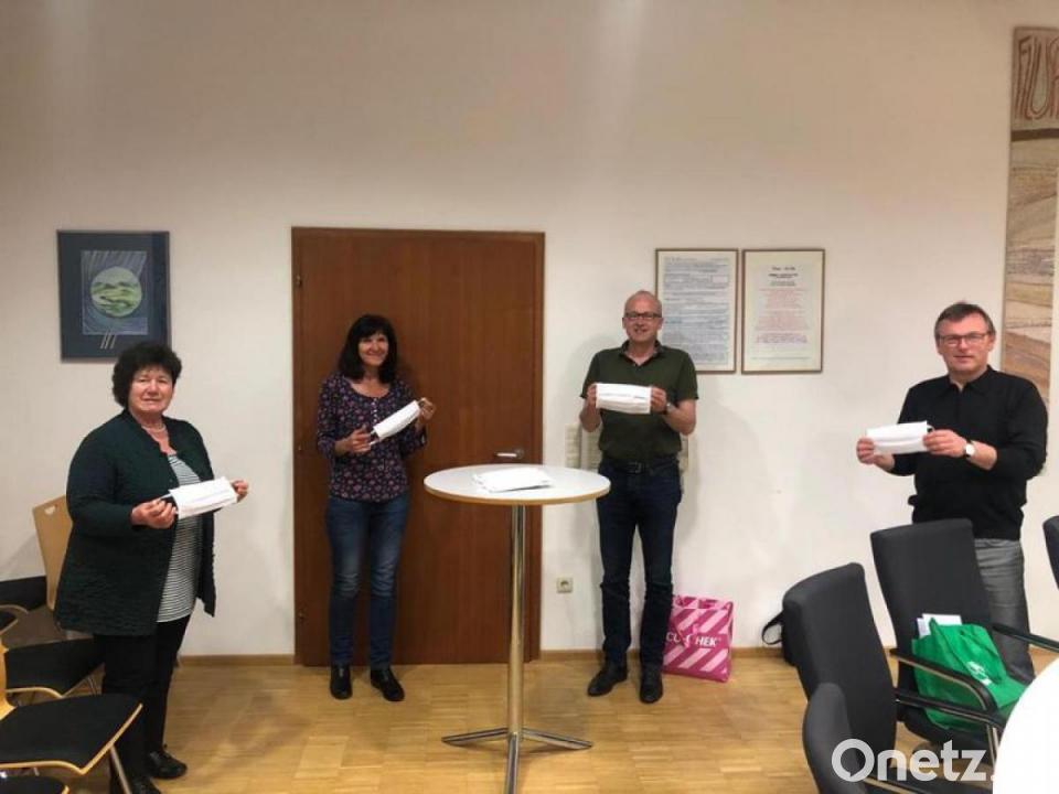 Bürgermeister Bernhard Lindner, FU-Vorsitzende Evi Höllerer, Gemeinderätin Brigitte Trummer und die Damen der VG verteilten die Mund-Nase-Masken, die nicht für medizinisches Personal geeignet sind, kostenlos an die Feuerwehr, die örtlichen Geschäfte, an Kindergärten, Schule und an die örtliche Arztpraxis für deren Patienten.