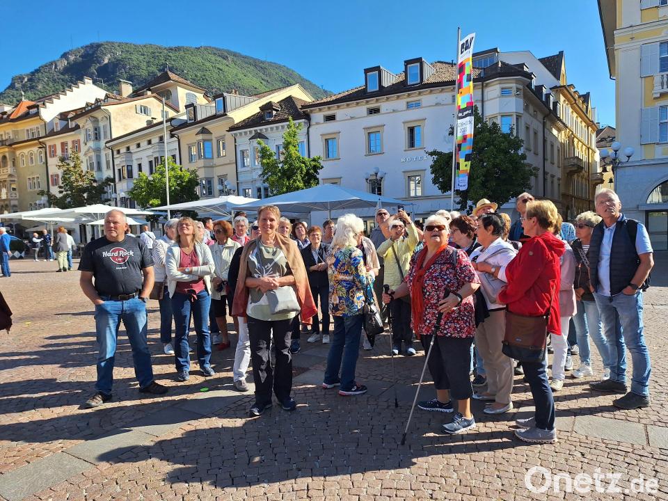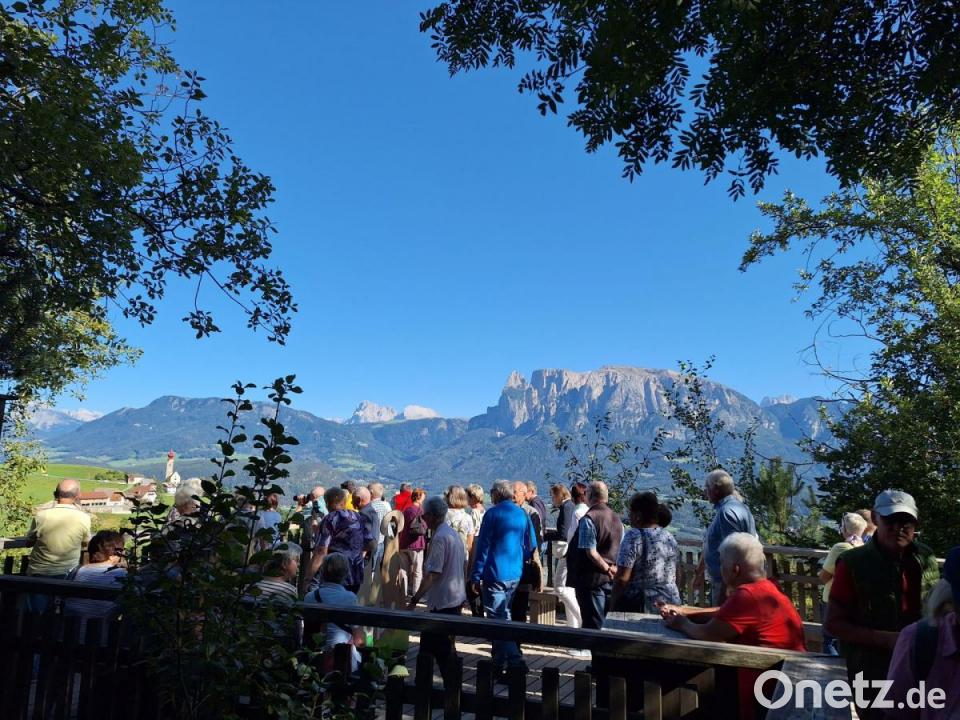 Am Tag drei galt es die Landeshauptstadt Bozen zu erkunden, natürlich wieder mit einer versierten Reiseleitung und die Gruppe erfuhr Wissenswertes über den Bozener Dom, die dortige Plappermadonna und weitere Details. Auch bei einem Spaziergang über den Obstmarkt, durch die Lauben und schmucken Gassen wieder zum Waltherplatz zurück gab es Informationen. Nach einer kleinen Pause folgte das nächste Highlight: mit der Gondel hoch nach Oberbozen fahren. Bei herrlichem Wetter war der Blick in die Bergwelt der Dolomiten überwältigend. Weiter ging es mit der historischen Schmalspurbahn durch eine Dolomiten-Welt mit atemberaubenden Aussichten zum Schlern, zum Rosengarten, zum Sellastock nach Klobenstein. Von hier aus wurde gewandert, hin zu einer Aussichtsplattform, um die Rittner Erdpyramiden zu bestaunen. Die gesamte Landschaft, das Sonnenplateau auf dem Ritten zeigten sich von der sonnigsten Seite.