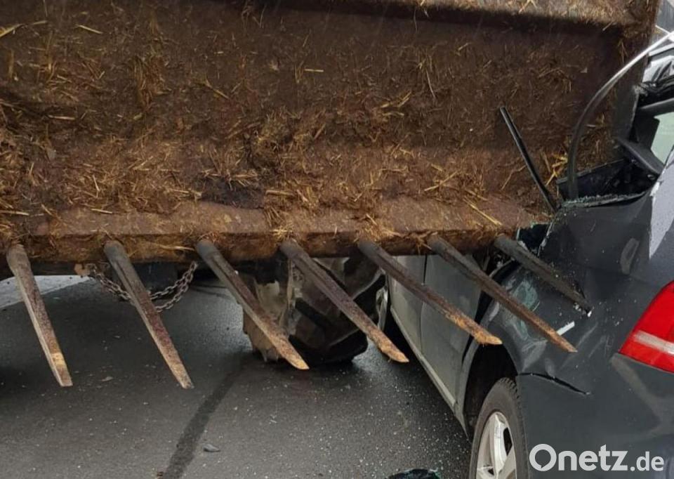 Großes Glück hatten die drei Insassen eines VW-Passat am Montag, 24. Februar, gegen 15.45 Uhr in Mimbach. Die 30-jährige Fahrerin des Pkw war von der Bundesstraße 299 kommend in Richtung Dorfmitte unterwegs, auf der Rückbank saßen ihre beiden neun Monate alten Zwillinge. Wie die Polizei berichtet, wollte im Ort ein Traktorfahrer nach links abbiegen und übersah den entgegenkommenden Pkw. Der 49-jährige Landwirt hatte die Mistgabel des Frontladers nicht nach oben angehoben, sondern unten, auf Höhe des Pkw gelassen.