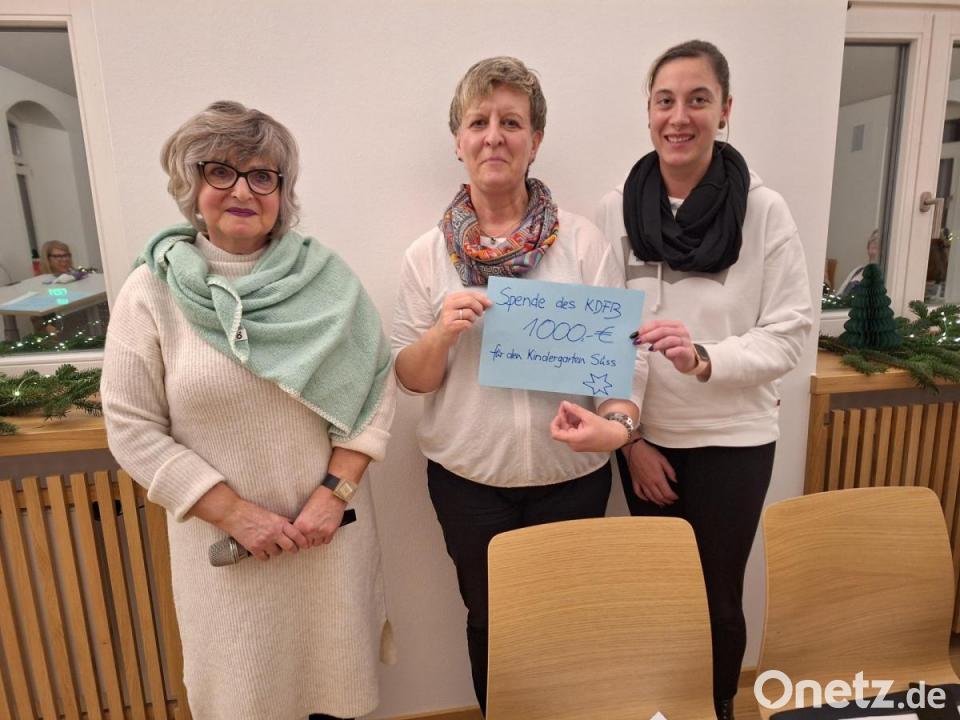 Bei seiner adventlichen Feier überreichte der Katholische Frauenbund Hahnbach Maria Kontny und Sabina Marek vom Kindergarten „Der gute Hirte“ in Süß eine Spende über 1000 Euro. Die beiden bedankten sich mit einem von den Kindern gemalten Geheft. Dem nach eigenen Angaben überglücklichen Kirchenpfleger Georg Münch überreichte Vorsitzende Hildegard Gallitzendörfer für die Reparaturen an den Orgeln in der Pfarrkirche und der Frohnberger Wallfahrtskirche ebenfalls jeweils 1000 Euro. Auch diesen Betrag hatten fleißige Hände des Frauenbunds in vielen Aktionen erarbeitet.