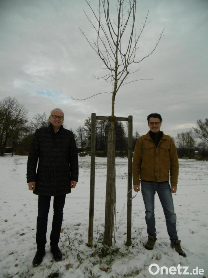 Quasi als Einstieg in seine neue Tätigkeit als Mitarbeiter im Bauamt der Gemeinde Hahnbach mit „Schwerpunkt Grün“ hat Jürgen Huber zwei besondere Bäume für die Gockelwiese spendiert. Huber erklärte Bürgermeister Bernhard Lindner auch gerne die Besonderheiten dieser sogenannten Zukunftsbäume. Schmunzelnd meinte er, dass damit das Areal an der Vilsbrücke schon fast zu einem einzigartigen Arboretum, einer Anpflanzung verschiedenster, teils auch exotischer Bäume, würde.