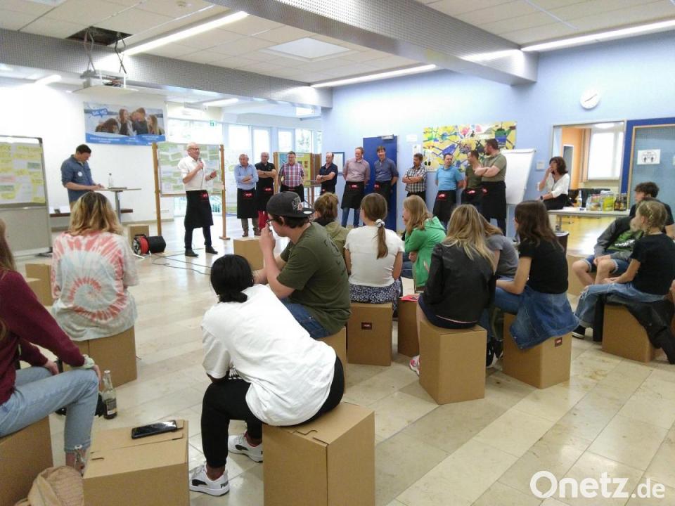 Moderator Michael Schröter (OTV) teilte die Teilnehmer drei Gruppen ein. Im 15-minütigen Wechsel und hoheitsvoll auf einem Thron galt es zuerst, Träume auszusprechen und Wunschtermine vorzutragen. „Was ist in, was ist out? Was wünscht du dir von den Vereinen?“ wurde dann abgefragt. In der dritten Staffel ging es um die konkrete Suche nach realisierbaren Wünschen und passenden Örtlichkeiten. Dabei zeigte sich auch, was die jungen Menschen im Gemeindegebiet Hahnbach bereits jetzt toll finden. Besonders häufig wurden das neu gestaltete Areal der Gockelwiese mit Spielplatz und Skateranlage sowie die schöne Bücherei genannt. Aber auch die Turnhalle, der Kindergarten, der Dönerimbiss sowie das neue Restaurant wurden positiv bewertet.