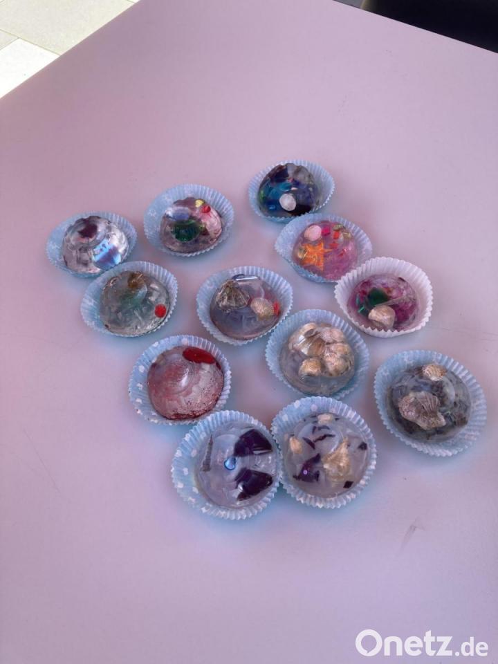 Im Buch-Haus in Hahnbach durften zwölf Kinder ihre eigenen Seifen gießen. Nach einer Einführung durch die Seifensiederin Helga Kustner mit Informationen rund um das Thema Seife kreierten die Mädchen und Buben, aufgeteilt in drei Gruppen, Seifen. Dazu wurde die flüssige Seife in Schälchen gegossen, ehe sie die Kinder nach Gusto mit Strass-Steinen, Muscheln, Glitzer, Kräutern und vielem mehr schmückten. Zwischendurch gab es zur Stärkung eine kleine schokoladige Brotzeit. Während die Seifen trockneten, wurde, passend zu den Ferien, aus dem Onilo-Bilderbuchkino „Jan und Julia verreisen“ vorgelesen „Ich packe meinen Koffer“ gespielt.