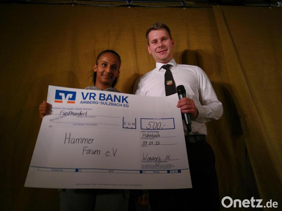 Ein großes Herz zeigte die Theatergruppe des Katholischen Burschenvereins (KBV) und der Mädchengruppe aus Hahnbach nach den allseits gelobten Aufführungen ihres Theaterstücks „Die falsche Katz“ im Dezember und Januar. KBV-Vorsitzender Martin Wawersig überreichte einen Riesenscheck an die Wahl-Kümmersbucherin Nada Al-Absi. Die junge Frau war 2011mit dreieinhalb Jahren aus dem kriegsgebeutelten Jemen über die Hilfsorganisation Hammer Forum nach Deutschland gekommen, wo sie mehrfach kostenlos operiert wurde. Dass sie so ihren Fuß behalten konnte, sei sie sehr dankbar, betonte die Jugendliche gerührt. Nada lebt seitdem fast ununterbrochen in der Familie von Hans Weiß in Kümmerbuch und ist in Hahnbach und Umgebung überall willkommen (wir berichteten). Den Scheck über 500 Euro hatte das Publikum bei einer Sammlung mit über 1700 Euro aufgestockt, so dass insgesamt 2100 Euro an das Hammer Forum überwiesen werden können.