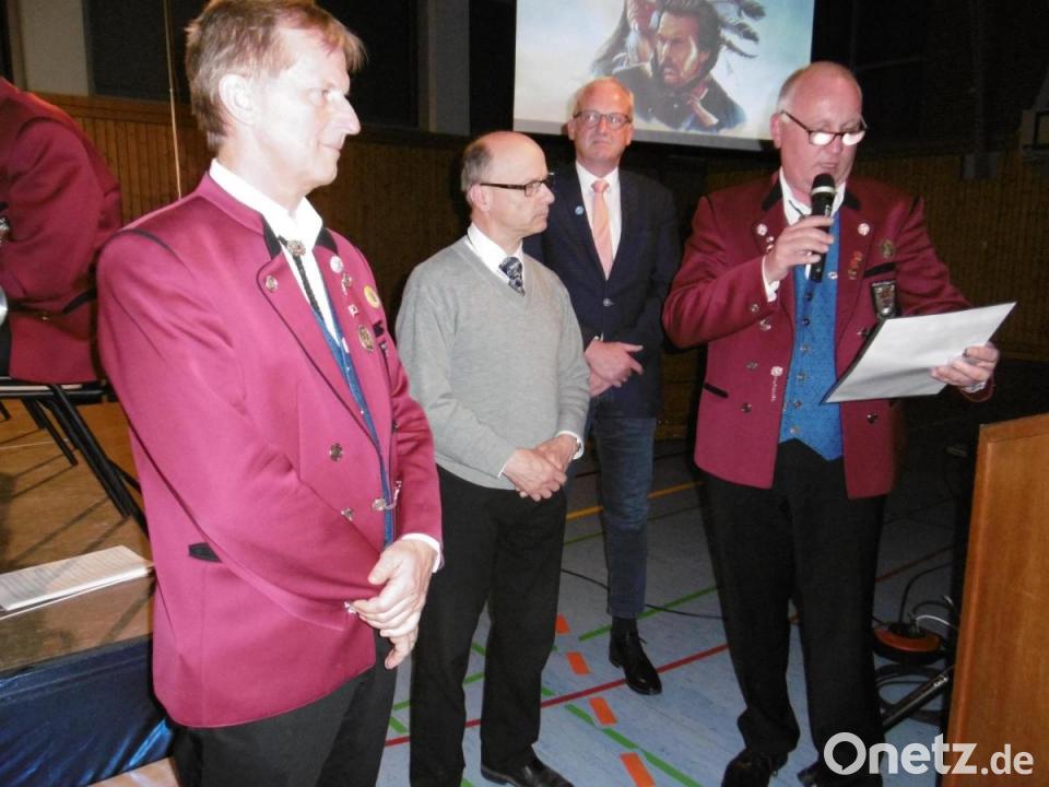 Horst Bauer, der zweite Kreisvorsitzende des Kreisverbandes Amberg-Sulzbach im Nordbayrischen Musikbund freute sich zusammen mit Bürgermeister Bernhard Lindner und Marktbläser-Vorsitzender Matthias Fenk dem Leiter Benno Englhart für zehn Jahre Dirigententätigkeit bei den Hahnbacher Marktbläsern die bronzene Ehrennadel und eine Urkunde überreichen zu dürfen. Fenk erinnerte daran, dass dahinter enormes Engagement mit etwa 400 Proben und an die 160 Auftritte stecken. Bürgermeister Lindner sagte indes weitere Probenräume zu, welche die Verwaltungsgemeinschaft im Gemeindehaus ausbauen lasse. Mit den Zugaben der „Lottchen Polka“ und dem „Glück-auf-Marsch“ wurden gegen 22 Uhr alle in die Aula zum gemütlichen Beisammensein entlassen.