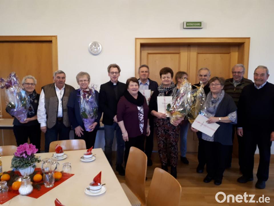 Im Anschluss zeichneten die beiden KAB-Sprecher Marianne Lindner und Karl Novak zusammen mit dem Präses zehn Mitglieder für 40 Jahre Zugehörigkeit zur KAB mit Urkunde und Anstecknadel des Bundesverbands sowie einem Geschenk des Ortsverbands aus: Anni und Michael Hiltl, Maria und Werner Krieger, Theresia und Jakob List, Resi und Josef Luber, Marianne Prem sowie Franz Bauer (abwesend). Gemeinsam gedachte man auch Hans Apfelbacher, der kurz vor seiner Ehrung verstorben war. Anschließend genossen alle Kaffee und Kuchen bei interessanten Gesprächsthemen.