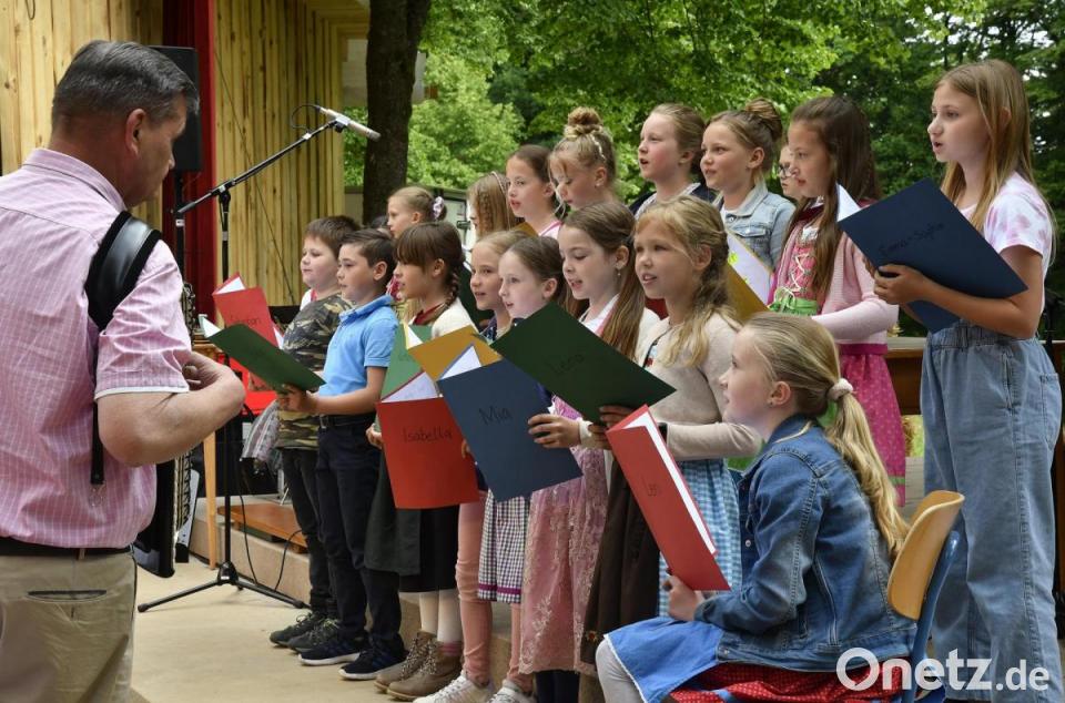 Nicht fehlen durfte natürlich die Hymne der Marktgemeinde, das „Tätärä Hahnbach“, das die Gebenbacherin Rita Butz mit ihren Sängerinnen eingeübt hatte. Ihre Hackbrett- und Instrumentalgruppe hatte mehrere Auftritte, die Mädchen sangen das Lied von der lästigen „Muckn“ oder schilderten „Des braucht ma af an Bauernhof“. Den musikalischen Teil bereicherten auch die Hahnbacher Sänger unter Leitung von Andreas Hubmann. „Mit an schöina Gsang fang ma an“, eröffneten sie ihr Repertoire, und endeten mit Schnaderhüpferln über Hahnbacher Kuriositäten. Den „gstandnen Männern“ standen junge Stimmen gegenüber. Der Schülerchor der 3a der örtlichen Grund- und Mittelschule unter Leitung von Johannes Mühldorfer bewies, dass auch die Kinder von heute noch den Oberpfälzer Dialekt beherrschen. Fast ohne Worte, dafür aber mit echten Heimatklängen auf Akkordeon, Klarinetten und Trompete unterhielten Dieter Kohl und seine Hoidlbrummer. Oberpfälzer Zwiefache, Polkas und der „Fuhrmann, da schware“, lösten begeistertes Mitklatschen auf den Rängen aus.