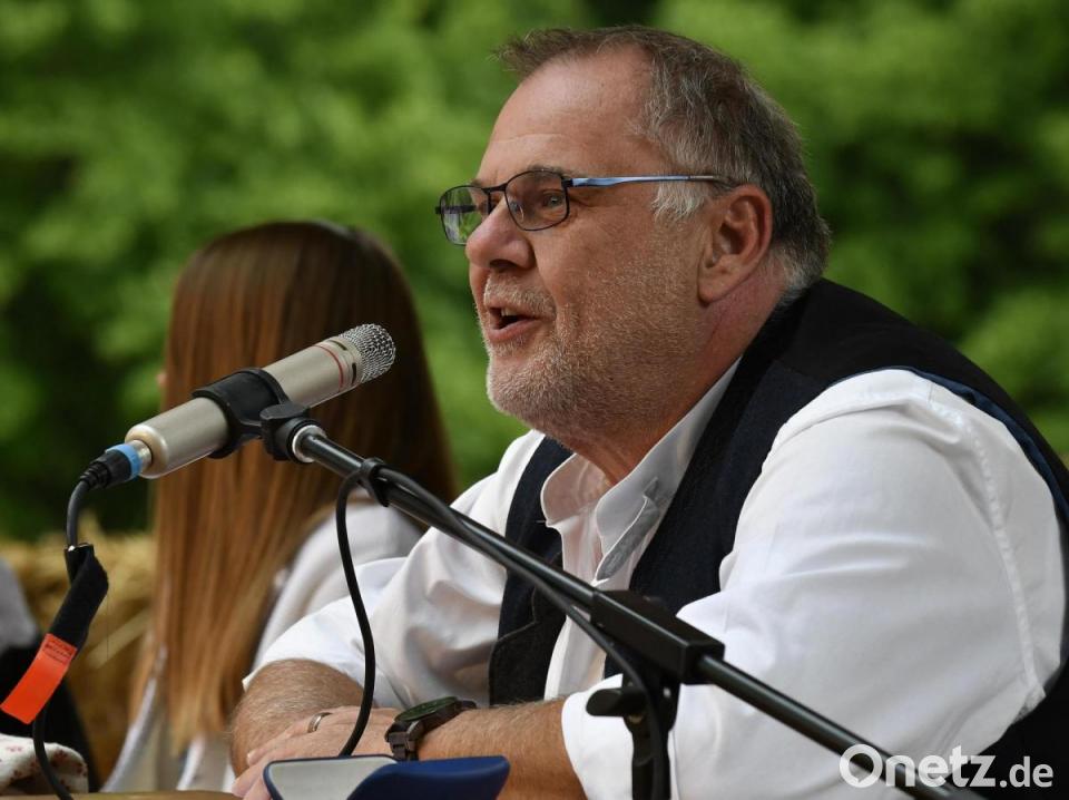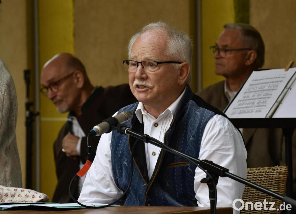 Sehr still wurde es dann, als Dieter Radl über seine Gedanken sprach. „Han mia oam dra“, schilderte er unser Leben im Überfluss, verglichen mit den Problemen in aller Welt. Aber: „Dou kummt so a Virus daher, nou is nix mehr wöis wor“. Zum Vergnügen aller Hahnbacher aber erzählt er auch eine wahre Begebenheit, sein „Hahnbacher Andenken“. Die Idee, sein Fahrrad, analog der Peter-Kuschel-Skulptur des Hahnbacher Fahrradträgers provozierend durch Hahnbach zu tragen, brachte ihm, dem „Sulzbacher Aff“, ein paar „Fotzen“ aufgebrachter Hahnbacher ein.