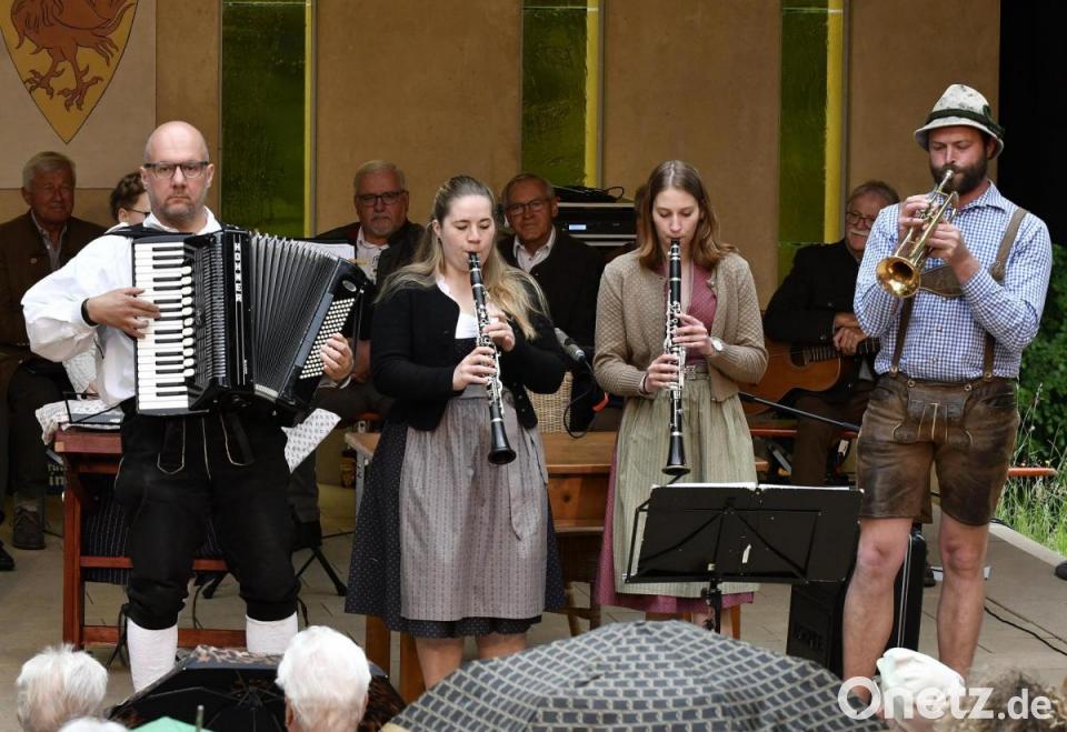 Landkreis-Mundarttage gibt es seit 1994. Diesmal haben Kreisheimatpflegerin Martha Pruy und ihre Hahnbacher Kollegin Marianne Moosburger die Hahnbacher 900-Jahr-Feier zum Anlass genommen, die Veranstaltung ins Festprogramm einzubinden. „I bin beeindruckt“, lobte Martha Pruy dann auch am Frohnberg in ihrer Begrüßung die überaus zahlreichen Besucher, die die Tribüne und die Stuhlreihen davor füllten. Auf dieser Bühne, eigentlich der Freialtar der Wallfahrtskirche St. Maria Himmelfahrt, hatten Frauen, Männer und Kinder Platz genommen, die Sänger, Musikanten und Poeten dieses Abends. Es dominierten Dirndl, Janker, Tracht. Auch Bürgermeister Bernhard Lindner war entsprechend gekleidet, als er den Initiatorinnen dankte und den Begriff Heimat erklärte mit „da wo man sich wohl fühlt und gut aufgehoben“. Martha Pruys Aufforderung „Sagts, wosts zren hats“ folgten Schlag auf Schlag die einzelnen Programmpunkte.