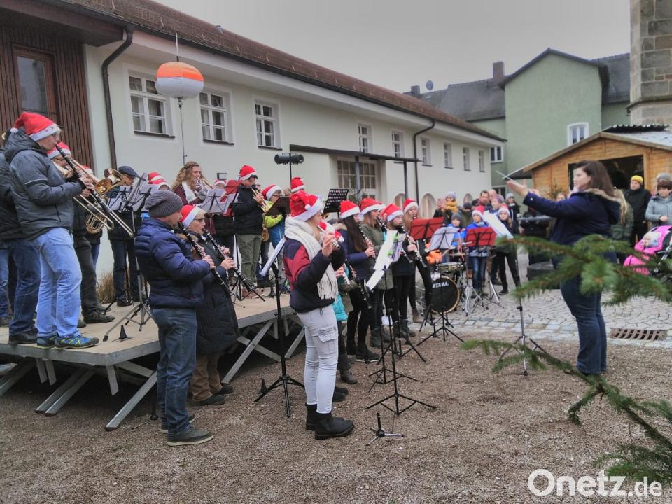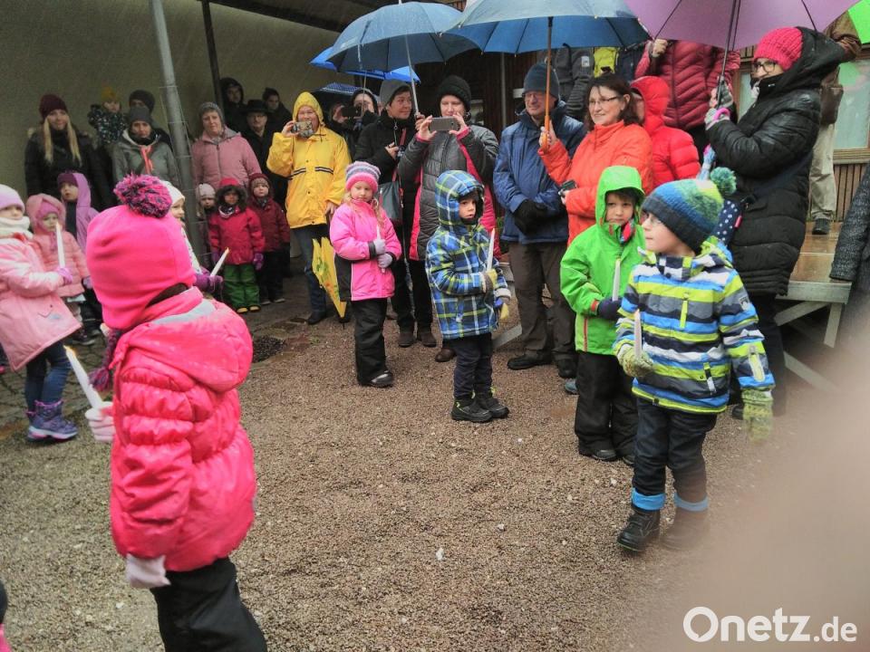 Am Sonntag beeinträchtigte Nieselregen den Markt. Doch der Kindergarten Süß trat mit Liedern, einem Gedicht und einem Tanz tapfer auf. Noch einmal schaute der Nikolaus mit seinem Knecht vorbei. Nach Einbruch der Dunkelheit verbreiteten die Hahnbacher Marktbläser unter Matthias Fenk beste Vorfreude auf die Weihnachtszeit.