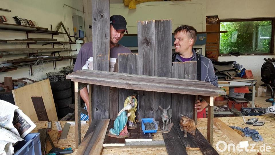 Durch Zufall erfuhren die "Krippenleit" aus Luppersricht, Hahnbach und Kötzersricht von der Renovierung eines alten Stadels auf dem Anwesen Weiß am Kümmersbucher Weg. Die Nachfrage nach nicht mehr gebrauchten alten Holzbrettern fand auch sogleich beim "Kegelschneinder", so der Hausname der Familie Weiß, offene Ohren. Zur zusätzlichen Freude aller stellte Martin Weiß darüber hinaus noch seine gut eingerichtete Werkstatt zum Stallbau für die Heilige Familie zur Verfügung.