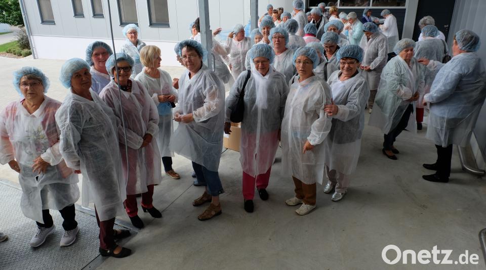 Nachdem alle Frauen hygienische Schutzkleidung trugen, konnte die Führung durch das Werk beginnen. Die Teilnehmerinnen sahen, wie aus Hartweizen und Eiern der Nudelteig hergestellt, verpackt und abgefüllt wird. Besitzerin Caroline Schnell erkläre begeistert wie sie Ihre Nudeln macht und welche Philosophie sie mit ihren Teigwaren verfolgt. Nach einem Einkauf im Hofladen kam die Gruppe für ein gemeinsames Foto zusammen. Nach dem Mittagessen führte der Weg – bei herrlichem Sommerwetter – weiter nach Berching zur Treidelfahrt auf dem Ludwig-Donau-Main-Kanal. Beschaulich schipperte die Alma Viktoria mit den Gästen den Kanal entlang und Hans-Georg Luber wusste viel Interessantes und Amüsantes zu berichten. Eine Einkehr auf der Kutscher-Alm in Pollanten bei Kaffee, Kuchen und Eiskaffee beendete die Fahrt ins Blaue. Zurück ging es über Neumarkt, hier konnten die Frauen vom Bus aus der Magnetschwebebahn der Firma Bögl einen Blick zuwerfen.