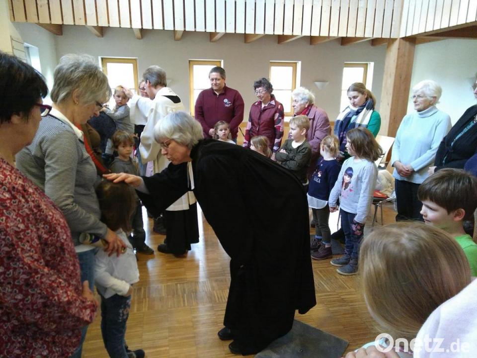 Pfarrer Schulz erklärte, dass segnen bedeute, jemandem Gottes Nähe zuzusprechen. Das Auflegen der Hände sei wie ein gut gemeinter Schutz zu verstehen, den ein Jeder einem Anderen zusagen und der sehr wohl stärken könne. Dann segneten die beiden Pfarrer die Kinder einzeln. Nach dem Vaterunser, dem Segenslied und beschenkt mit bunten Luftballons mit dem Aufdruck „Jesus liebt Kinder“ wurden die Mädchen und Buben fröhlich in den Abend entlassen.