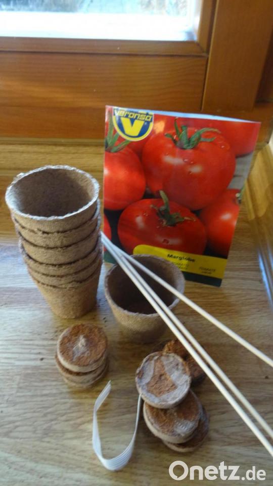 Natürlich habe ich kleine Marker in die Erde gesteckt, denn es sind verschiedene Sorten von Tomaten, die ich jedes Jahr säe. Da sind einmal die Arten, die sich bewährt haben, die runde Stabtomate "Sparta", die Kirschtomate "Philovita" oder die ovale Mini-Cherrytomate zum Naschen. Von der großen Fleischtomate "Ochsenherz" habe ich im vorigen Sommer Samen getrocknet. Sie kommen auch dieses Jahr wieder in die Erde.