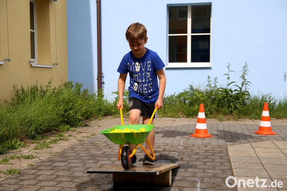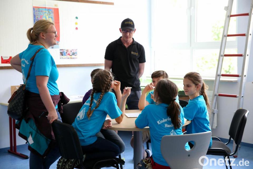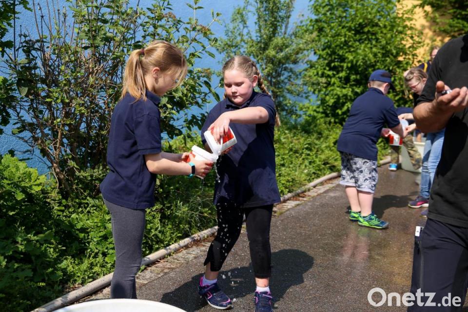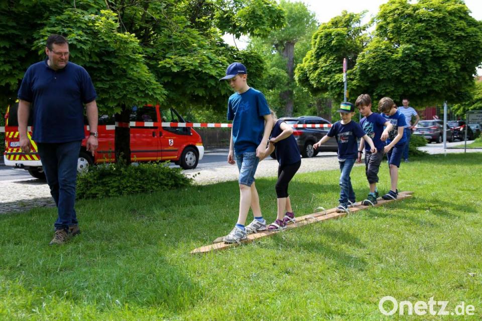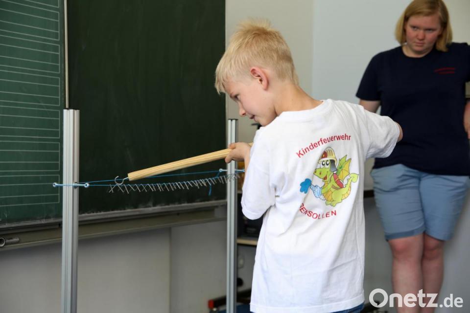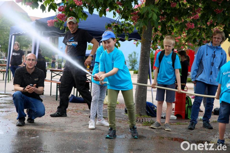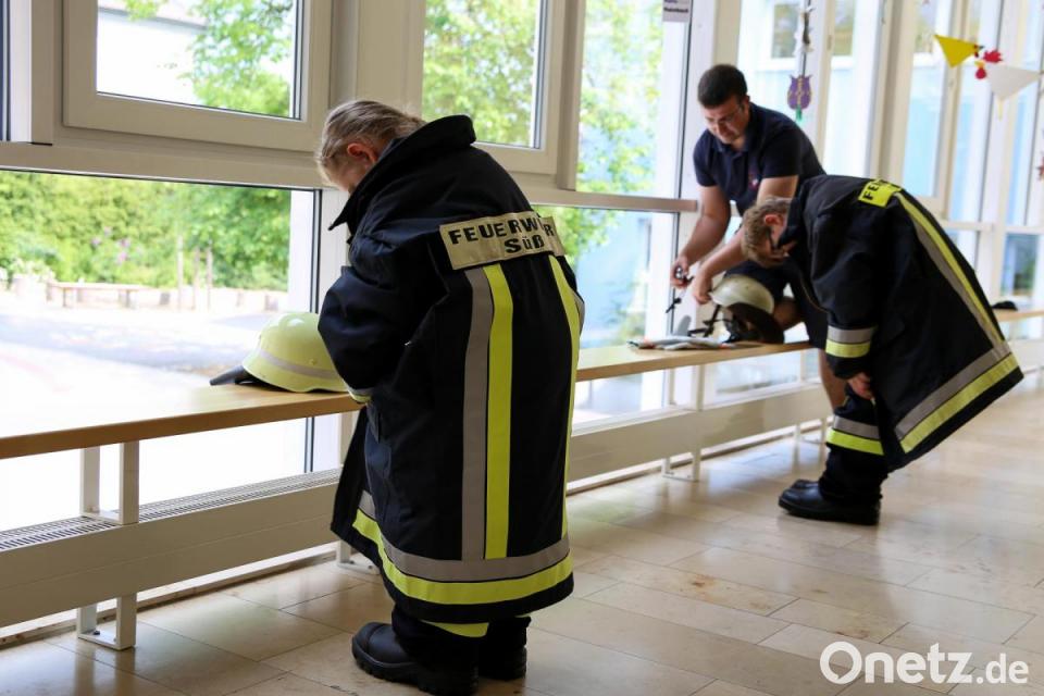 In Rekordzeit einen Löschanzug anziehen, nicht gerade einfach für die Kinder. Denn die Klamotten waren viel zu groß