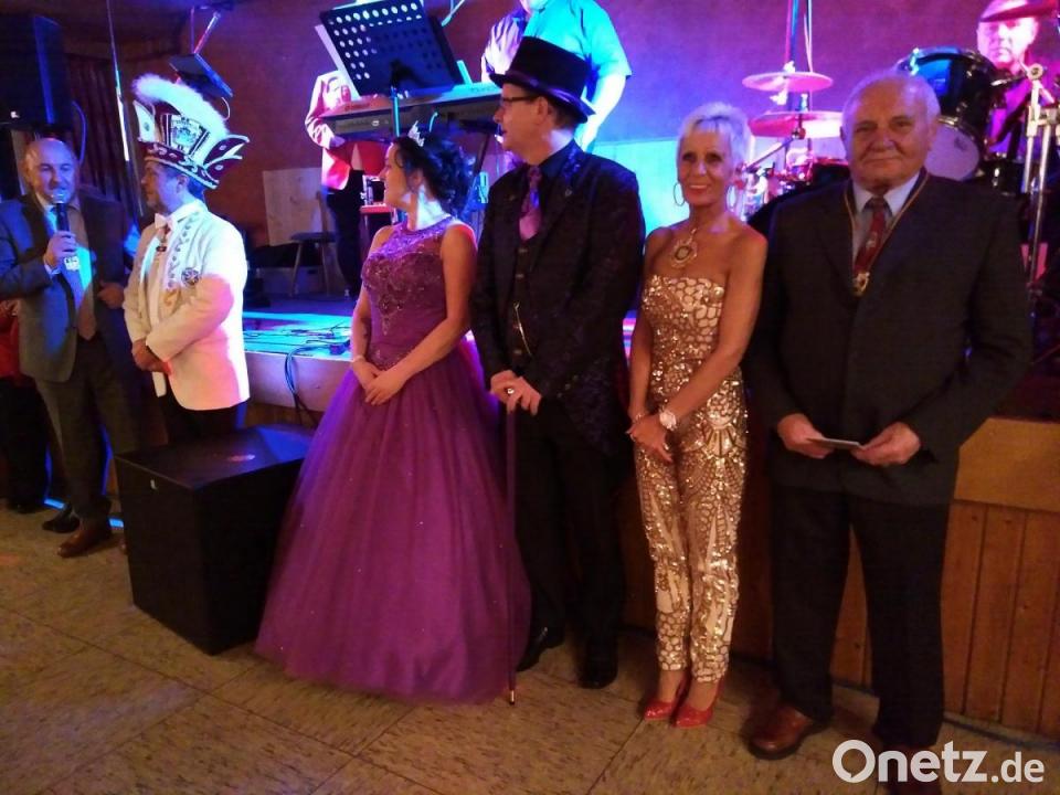 Jürgen Mühl, Präsident der Narrhalla Rot-Gelb Amberg, hatte seinen ganzen Hofstaat, die Garde und natürlich das Prinzenpaar mitgebracht. Er informierte auch, dass man Prinz Thomas II. „aus dem Rheinland eingekauft hat". Dieser begann sogleich mit dem Hahnbacher Publikum zu „arbeiten“ und eine Stimmungsrakete „perfekt wie beim Kinderfasching“ einzustudieren. Sein Lob „Geht doch!“ beim Platzen amüsierte auch Prinzessin Nicole I., die den Ballbesuchern ein dreifaches „Amberg Oho“ abverlangte.