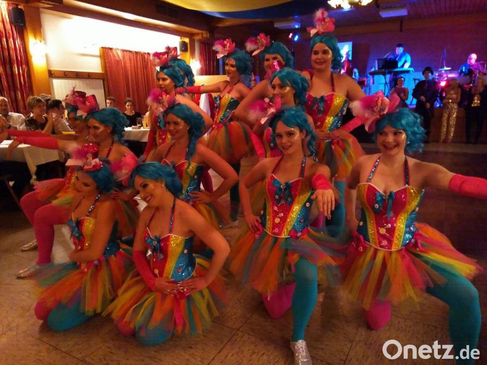 Nach einigen Tanzrunden tauchten die Amberger Narren wieder vollzählig auf, um „Faktotum“ Erich Kelsch und Georg Götz mit Faschingsorden auszuzeichnen. Nicht zuletzt ihnen zur Ehre exerzierten die laut Mühl „hübschesten Mädchen aus dem ganzen Landkreis“ schmissig zu einem Potpourri von der „Hymne an die Freude“ bis hin zur Habanera aus Carmen. Mit einer Einladung zum Sekt bedankten sich die beiden neuen Ordensträger bei den Ambergern. Gerne nahmen diese das Angebot an und versprachen zum Hahnbacher Faschingszug wieder zu kommen.