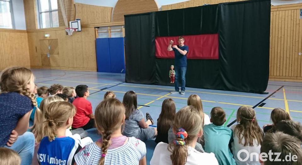 Die Faszination Märchen ist ungebrochen: Gespannt verfolgen Hahnbacher und Gebenbacher Grundschüler die Geschichte vom "Teufel mit den drei goldenen Haaren". Das Marionettentheater Bille aus Leipzig kam mit diesem Stück in die Oberpfalz.
