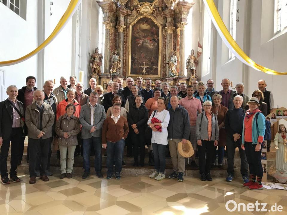 In der Pfarrkirche St. Jakobus in Hahnbach traf sich eine fast 50-köpfige Pilgergruppe aus ständigen Diakonen der Diözese und ihren Begleiterinnen. Mit der Wallfahrt auf den Frohnberg feierten sie den Abschluss des 50-jährigen Bestehens ihres Berufszweigs. In der Diözese Regensburg gibt es seit dem zweiten Vatikanischen Konzil an die 100 ständige, verheiratete Diakone. Diese arbeiten nach ihrer theologischen Ausbildung und Weihe – teils hauptberuflich, teils "mit Zivilberuf" – in Pfarreien und treffen sich regelmäßig zu Fort- und Weiterbildungen. Anlässlich ihres Jubiläums hatten sie bereits im vergangenen Jahr eine gemeinsame Pilgerfahrt ins Heilige Land unternommen und mit dem Besuch des Hahnbacher Wallfahrtsbergs schlossen sie nun den Reigen. Sebastian Aicher begrüßte vor und Richard Sellmeyer in der Pfarrkirche die große Schar. Betend und singend pilgerte man dann zur Muttergottes auf den Frohnberg. Domprobst Franz Frühmorgen zelebrierte dort den Gottesdienst. Ein Essen und gute Gespräche beendeten den gelungenen Tag.
