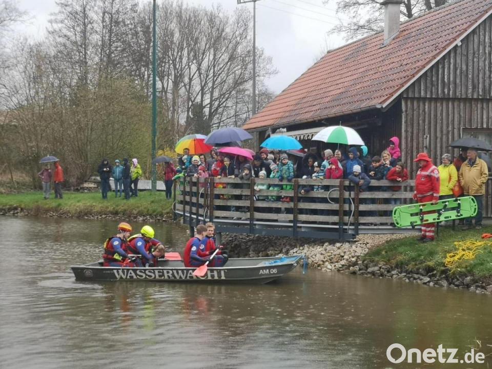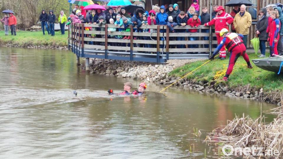 Besonderes Interesse fand die Schauübung, die bei ungemütlichen äußeren Bedingungen im Gemeindeweiher abgehalten wurde. Dabei präsentierten die Wasserwachtler verschiedene Rettungsszenarien wie die Rettung mit einem Wurfretter sowie mittels eines Spineboards auf ein Boot. Sie zeigten, dass sie jederzeit einsatzbereit sind. In der Fahrzeughalle konnten sich die Besucher bei Kaffee und Kuchen aufwärmen. An verschiedenen Stationen konnten sich die Schaulustigen auch darüber informieren, was sich in den 50 Jahren in der Gruppe zugetragen hat, wieso damals zunächst ein Stützpunkt der Wasserwacht gegründet worden war und wo überall ein Zeltlager stattfand. Selbstverständlich gab es auch Infos über das seit 1980 stattfindende Vilsschwimmen, das damals noch in Süß gestartet wurde. Ebenso wurden die vielfältigen Aufgaben erklärt, bei denen oberste Priorität die Prävention vor dem Ertrinkungstod hat, ebenso die umfangreiche Ausbildung bis hin zum Katastrophen- und zum Gewässer-, Natur- und Umweltschutz. Einige Höhepunkte aus dem Vereinsleben wurden aufgezeigt. So wurde 1976 die erste Tauchausrüstung beschafft, ein Jahr später erfolgte der erste Einsatz in der Vils. Ein eigenes Einsatzfahrzeug gab es im Jahr 1998, im Jahr 2013 wurde die Einsatzgarage am Gemeindeweiher erbaut. Alle Besucher konnten an einem Quiz mit Fragen zu 50 Jahre Wasserwacht Hahnbach teilnehmen. Die Feierlichkeiten gehen das ganze Jahr noch weiter mit einer Veranstaltung in jedem Monat. Höhepunkt des Jubiläumsjahrs ist das große Geburtstagsfest am 9./10. September mit Live-Musik, einer historischen Wasserwachts-Modenschau und weiteren Attraktionen.