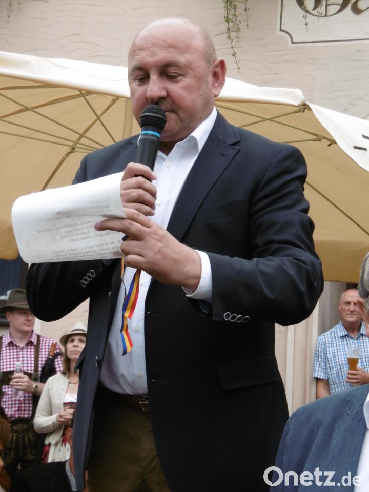 (mma) Zwiezach"ist das Wetter am Samstagabend, doch "wenn Makkfest is, is Makkfest" - da wird gefeiert. Angeführt von den Marktbläsern ziehen Jagdhornbläsern, Politprominenz, Kirwapaare, Pfarr- und Gemeinderäte, Pfarrverwaltung, begleitet von Heroldsfriedensrufen durch den Ort. Mit Geschenkeaustausch mit den amerikanischen Freunden und dem Bieranstich startet das Fest zum Patrozinium der St. Jakobus-Pfarrkirche.