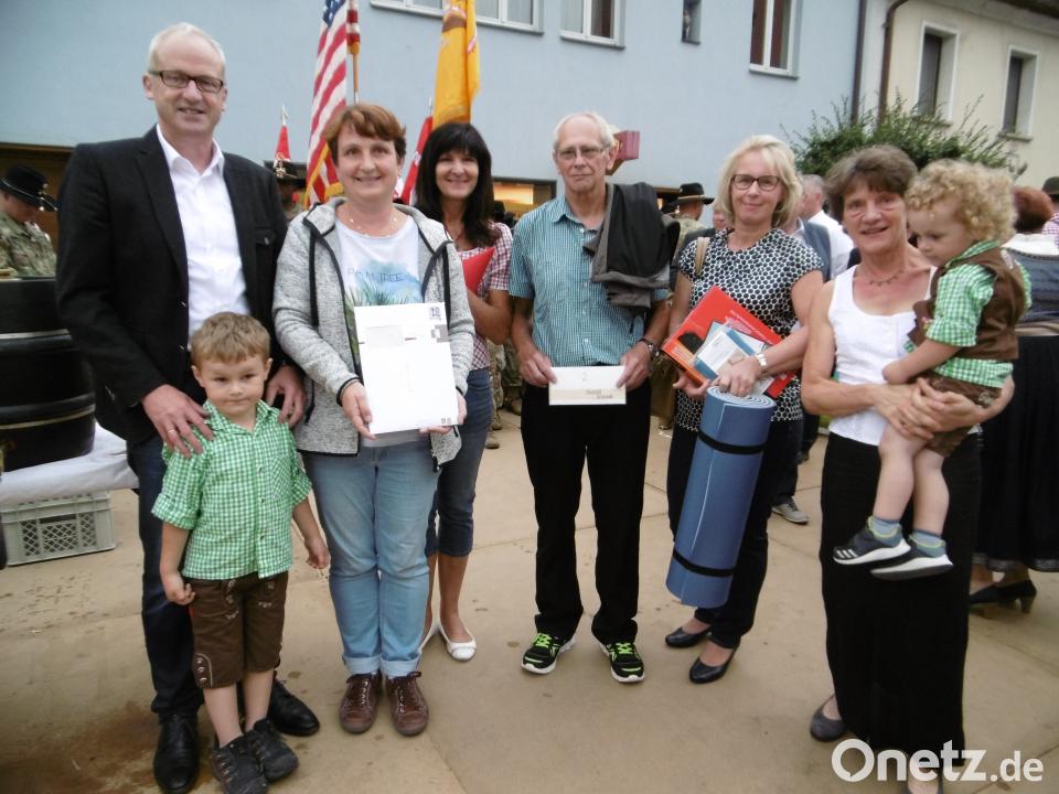Gespannt warteten am Kirwabaam viele auf die Auslosung der Sachpreise der Sport-Beginner. Initiatorin Monika Hecken-Emmel war mit den Enkeln Robin und Tim als "Glückselfen" gekommen: 15 Sachpreise gingen an die Teilnehmer. Über den dritten Preis, einen DVD-Player samt Sport-CD und Stretchband, freute sich Irmgard Berger. Der zweite Preis, ein Essen im Soul-Food (Auerbach) gewann Gerhard Dorner und ein Wellness-Hotel-Gutschein (500 Euro) ging an Renate Mende-Scherer, ihre Schwester nahm diesen entgegen. Zum ersten Mal traten auch die Süßer Plattler mit einer fast 20-minütigen Choreographie auf. Die sieben "gstandnen Manna" überzeugten nach Einnahme einer Wurst-Eier-Pfanne, welche sie vor aller Augen auf offenem Feuer brieten, mit "echter rhythmischer Holzarbeit".