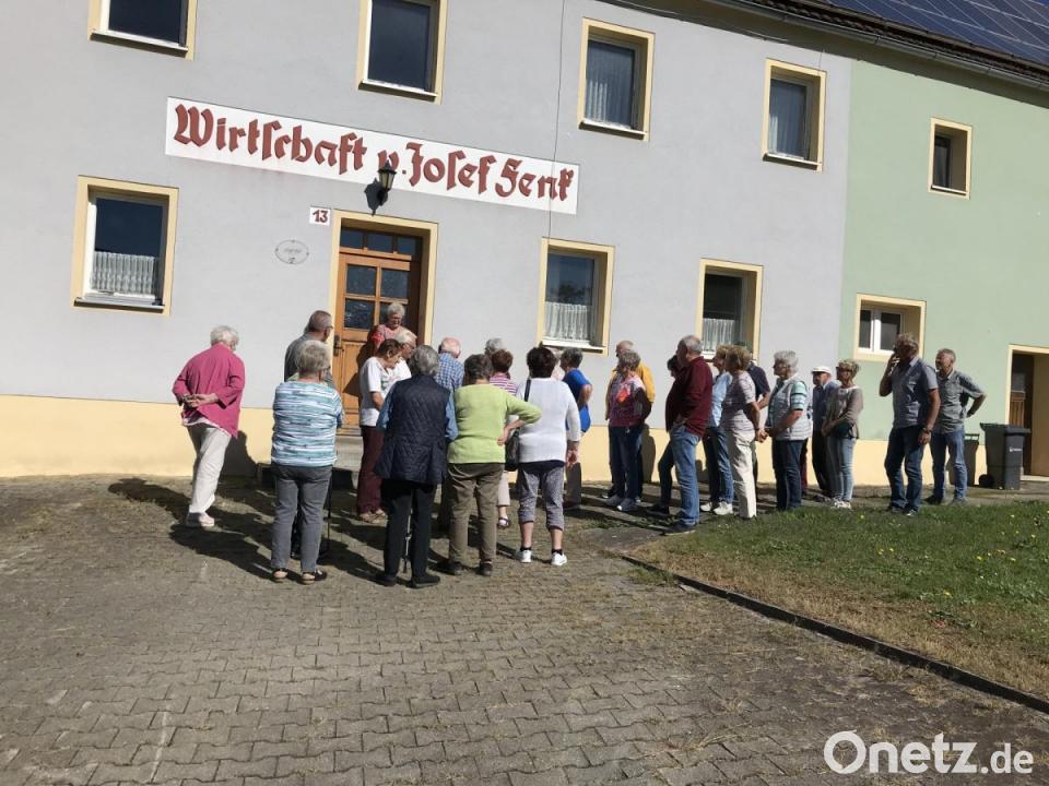 Vorm Fenk trug Marianne Moosburger das lange „Otzmasriader Feierwehrlied“ vor, wie es dort einst der „Schousda Koul“ so oft zu Besten gegeben hatte. Es gipfelte im „was verschont die Feuersbrunst, richten wir mit dem Wasser z'grund“ und dass man dann halt beim Viel-Zu-Spät-Kommen eben „Mörtl griad“ hat. Endpunkt der Rundreise war die Einkehr im Gasthof „Zur Traube“ in Gebenbach. Wissenswertes, Kurioses und Anekdoten hatte die Heimatpflegerin von den alten vier Gasthäusern parat und auch manch Humorvolles von der relativ neuen Sportgaststätte. Andreas Hubmann, Chorleiter, Bandleader und ehemaliger Gymnasiallehrer für Musik war hinzugekommen und begleitete auf seiner Gitarre ältere und neuere Lieder, die gerne mitgesungen wurden, bevor es am Nachmittag wieder nach Hahnbach zurückging.