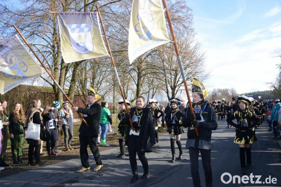Um die zehn Festwagen mit Fußgruppen hatten den Weg nach Hammerles gefunden. Neben dem Faschingsverein Hammerles, liefen bei Sonnenschein auch Maschkerer aus Pressath, Vohenstrauß und Pleystein mit. Traditionell dabei ist auch die Prinzengarde aus Waldeck.