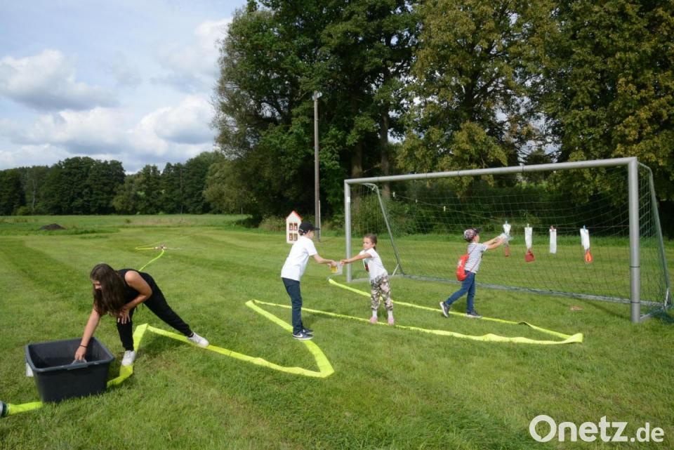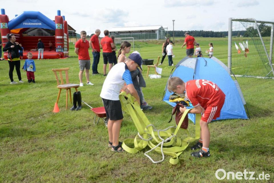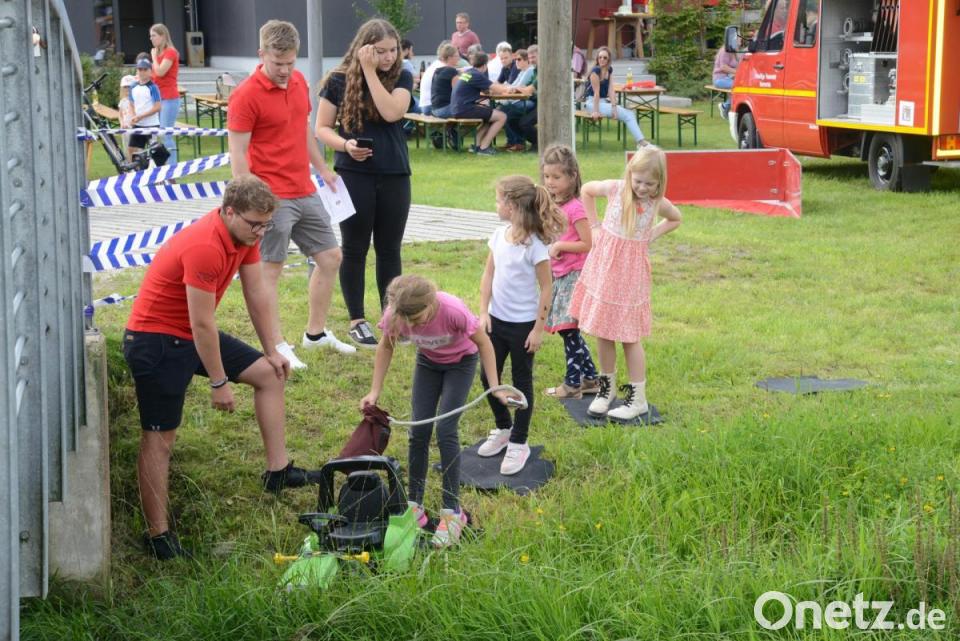 Rund 70 Kinder waren gekommen. Unterstützt durch die Tipps des potentiellen Betreuerteams der kommenden Kinderfeuerwehr bewältigten sie leichte Übungen unter den Grundgedanken „Bergen, Retten, Löschen und Schützen“. An vier verschiedenen Stationen konnten sie ihr Geschick zeigen.