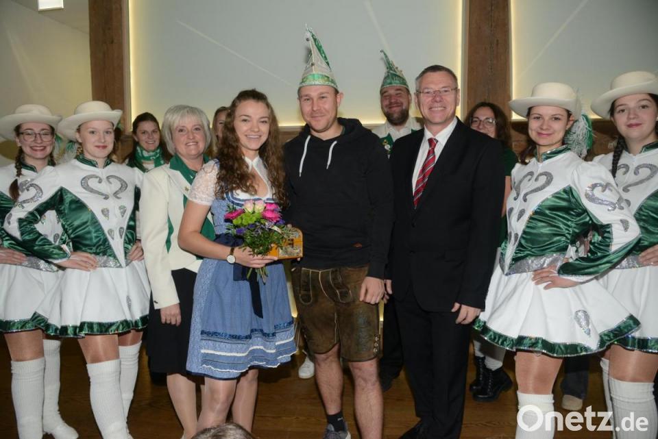 Und was natürlich von großem Vorteil ist: Die neue Faschingsprinzessin zeigte nach eigenen Worten bereits im vergangenen Jahr ihr Interesse, „unbedingt“ diese Würden übernehmen zu wollen. Die Präsidentin sei deshalb auch überzeugt gewesen, dass Prinzessin Stefanie I. mit Prinz Patrick I. – die beiden sind auch im Privatleben ein Paar – ihre Aufgabe „mit Herzblut“ meistern werden. Nachdem der Faschingsprinz derzeit in seiner Bewegungsfreiheit noch etwas eingeschränkt ist, brauchte er sich zur Übernahme der Narrenkappe auch nicht hinknien.