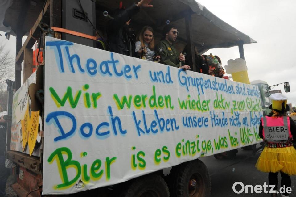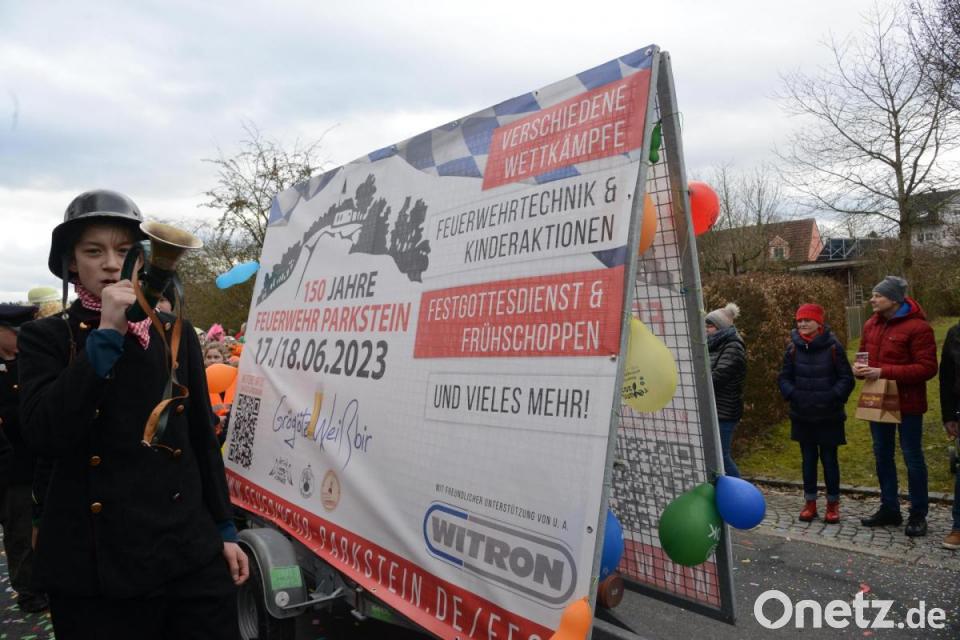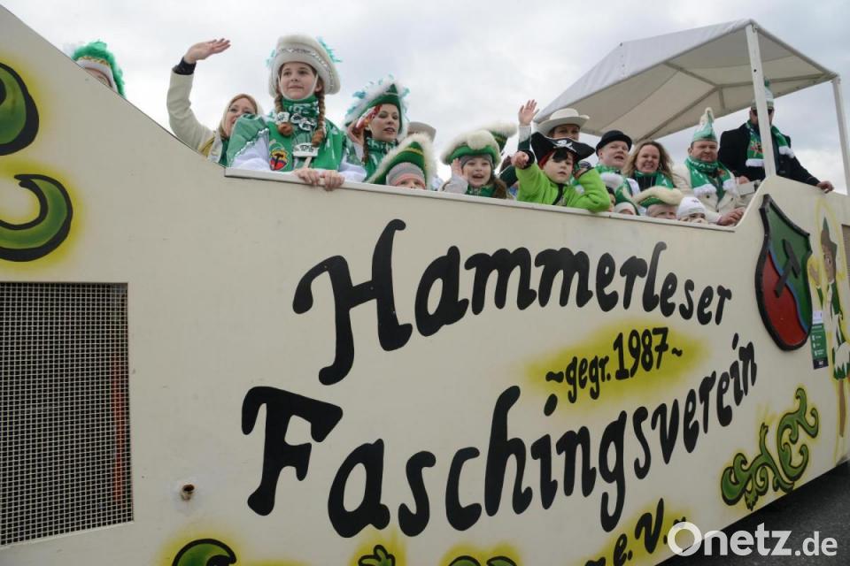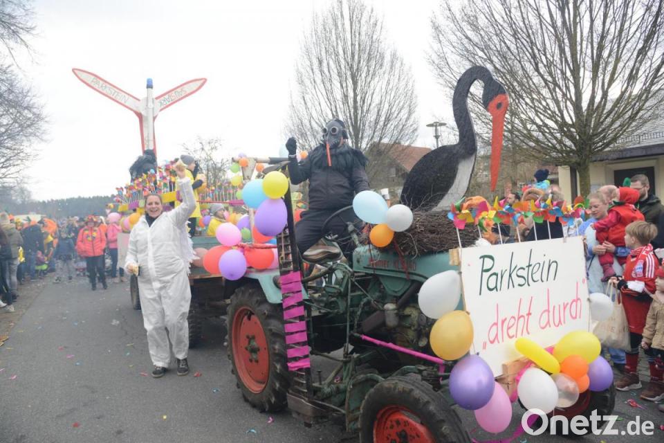 Zehn Festwagen mit den dazugehörigen Fußgruppen und dazu noch eine Vielzahl weiterer Fußgruppen präsentierten sich als Hammerleser Faschingszug 2023. Die hohe Politik blieb im Gegensatz zum rheinischen Karneval außen vor, ein Motivwagen nahm die geplante Errichtung des Windparks aufs Korn. „Willst du ein hohes Windrad sehn, brauchst nur vor die Türe gehn.“ Das Wort Windrad fehlte in dem Reim, es wurde ersetzt durch das große Windrad auf dem Anhänger der Gruppe. Ein Traktor mit dem Schild „Parkstein dreht durch“ zog den Anhänger. Auf dem Traktor befanden sich ein Riesenvogel und ein Ungetüm, für einen Laien nicht genau zu identifizieren.