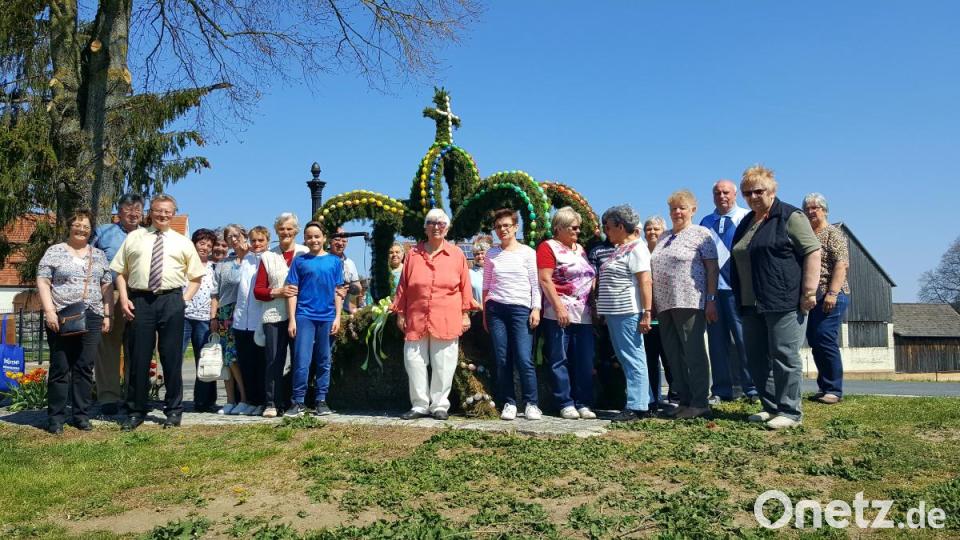 Sächsische Besucher am Osterbrunnen in Hannesreuth